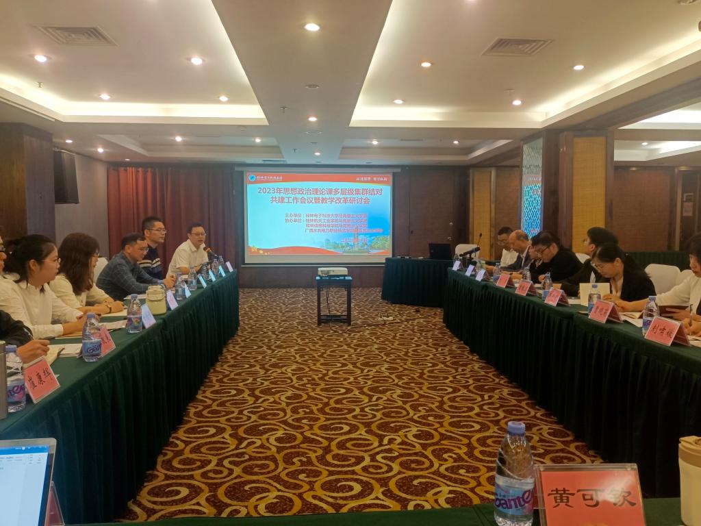 根据自治区党委教育工委、自治区教育厅《广西高校“思想政治理论课多层级集群结对共建大行动”实施方案》工作安排,为加强集群结对共建各院校沟通交流,相互学习,10月30日上午,由桂林电子科技大学马克思主义学院牵头组织开展思想政治理论课多层级集群结对共建院校系列交流活动,活动在桂林百悦酒店二楼两广馆举行。beat365马克思主义学院、桂林航天工业学院马克思主义学院、广西水利电力职业技术学院马克思主义学院领导、教研室主任和骨干教师共三十余人参加此次研讨会。