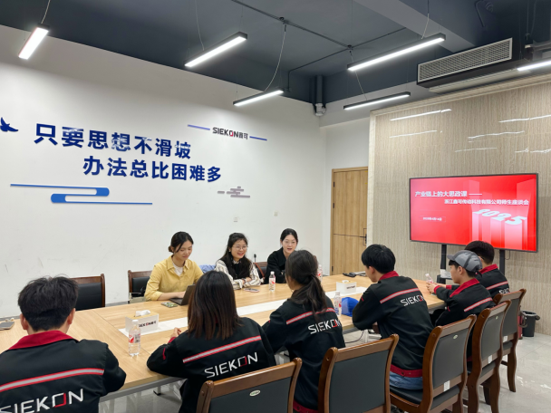 三位教师深入生产一线实地考察,详细了解学生的工作表现,对其展现的专业素养和敬业精神给予充分肯定,并勉励学生珍惜实践机会,促进理论知识与岗位需求的深度融合。在随后召开的座谈会上,师生围绕实习收获与职业规划展开交流。针对学生提出的困惑,教师团队结合专业知识和行业现状给予指导,通过产业链思政课引导学生树立正确择业观,强调要立足产业发展需求,在实践中拓宽职业视野。