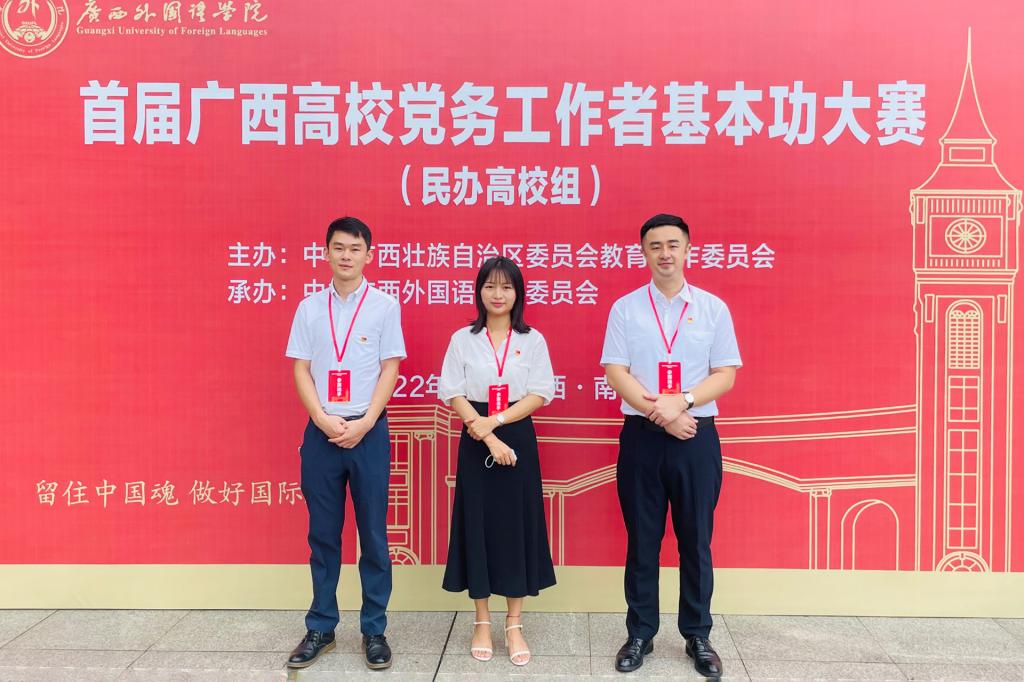 近年来,参加首届广西高校党务工作者基本功大赛(民办高校组)教师党支部书记组,获一等奖;指导beat365学生参加“我心中的思政课”全区高校大学生微电影展示活动,获三等奖;获得beat365官方网站2020年度优秀共产党员、2021年度优秀共产党员、2022年度优秀党务工作者、2022年度学校党建工作优秀奖等表彰多项。