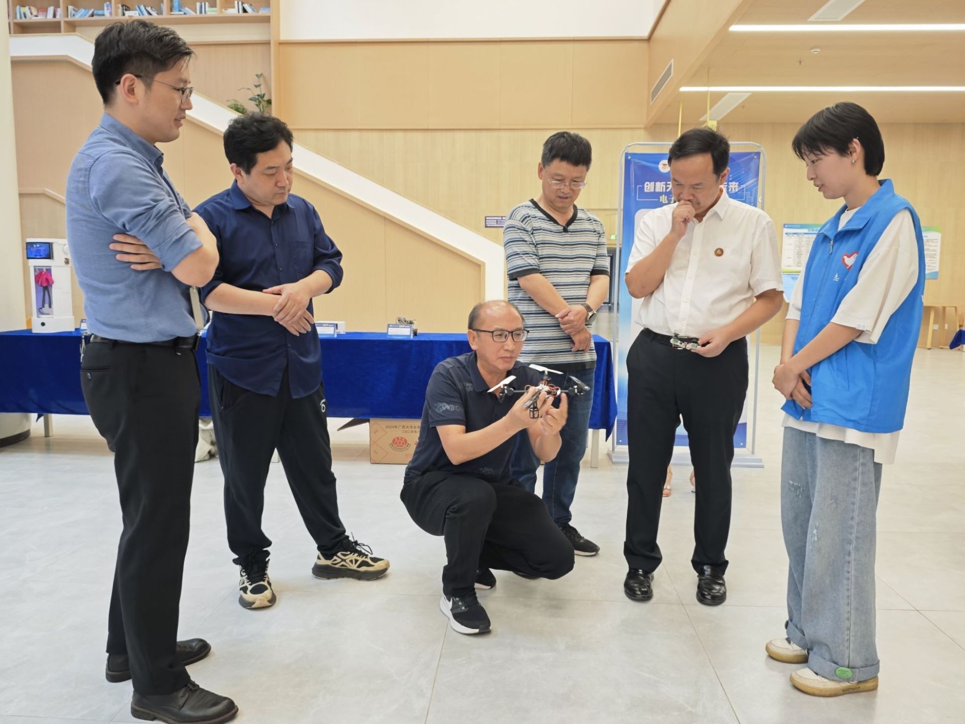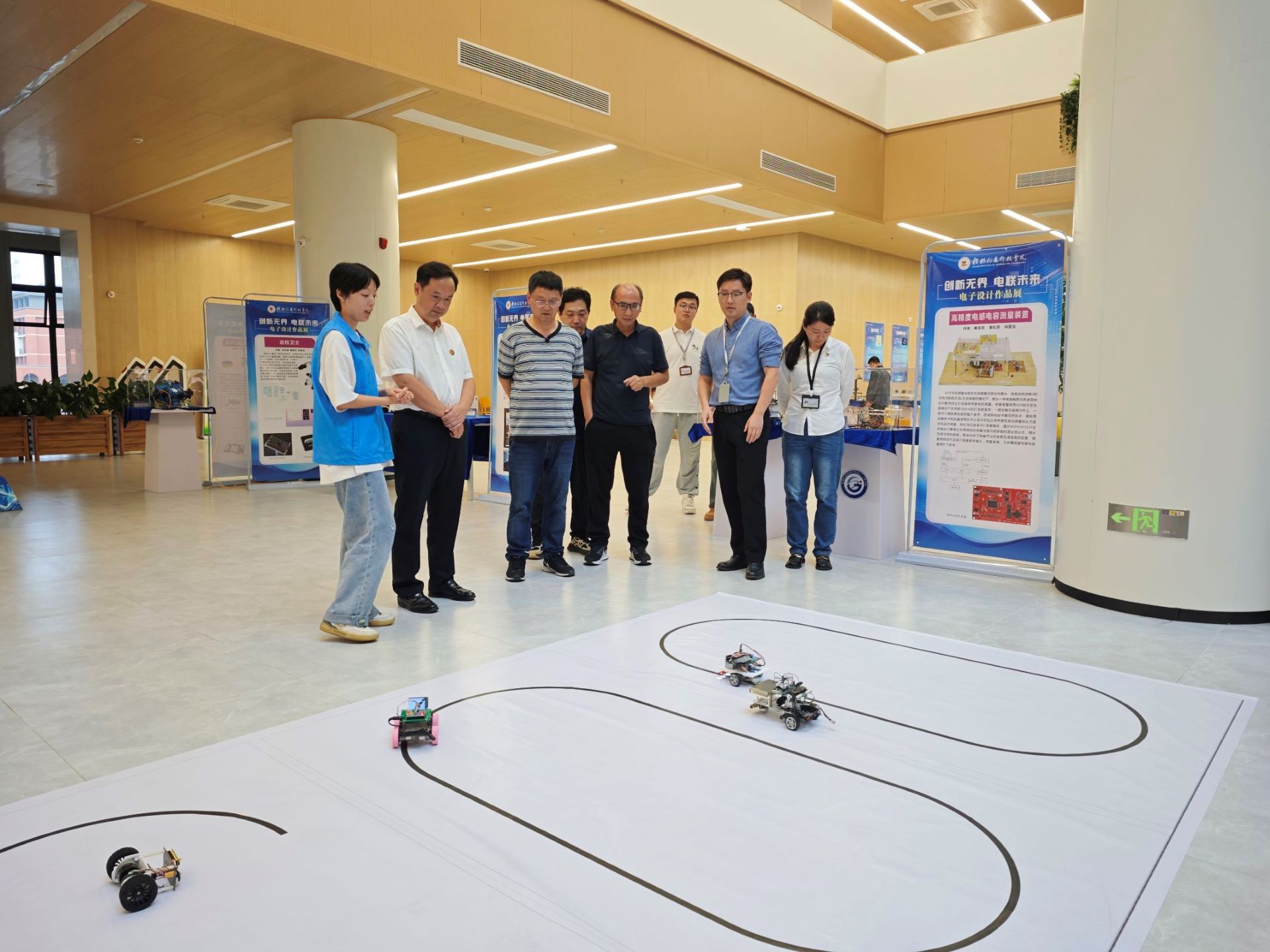 10月14日,由学校教务处和素质素养中心主办、电子工程学院承办的“创新无界 电联未来”电子设计作品展在知行楼一楼拉开序幕,吸引了众多师生前来参观。10月17日,学校董事长罗欣莅临作品展现场参观指导。