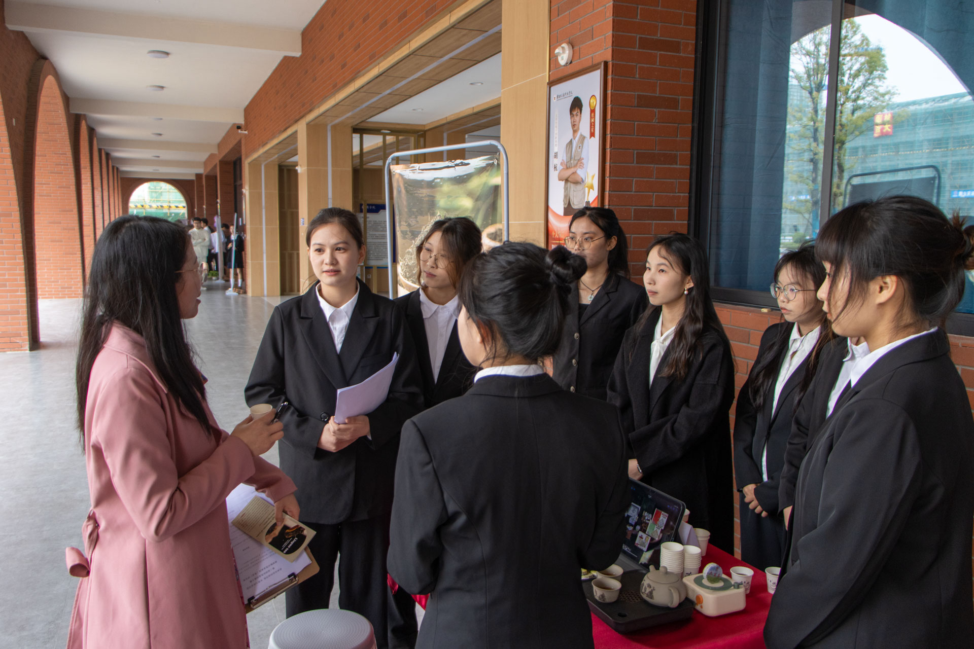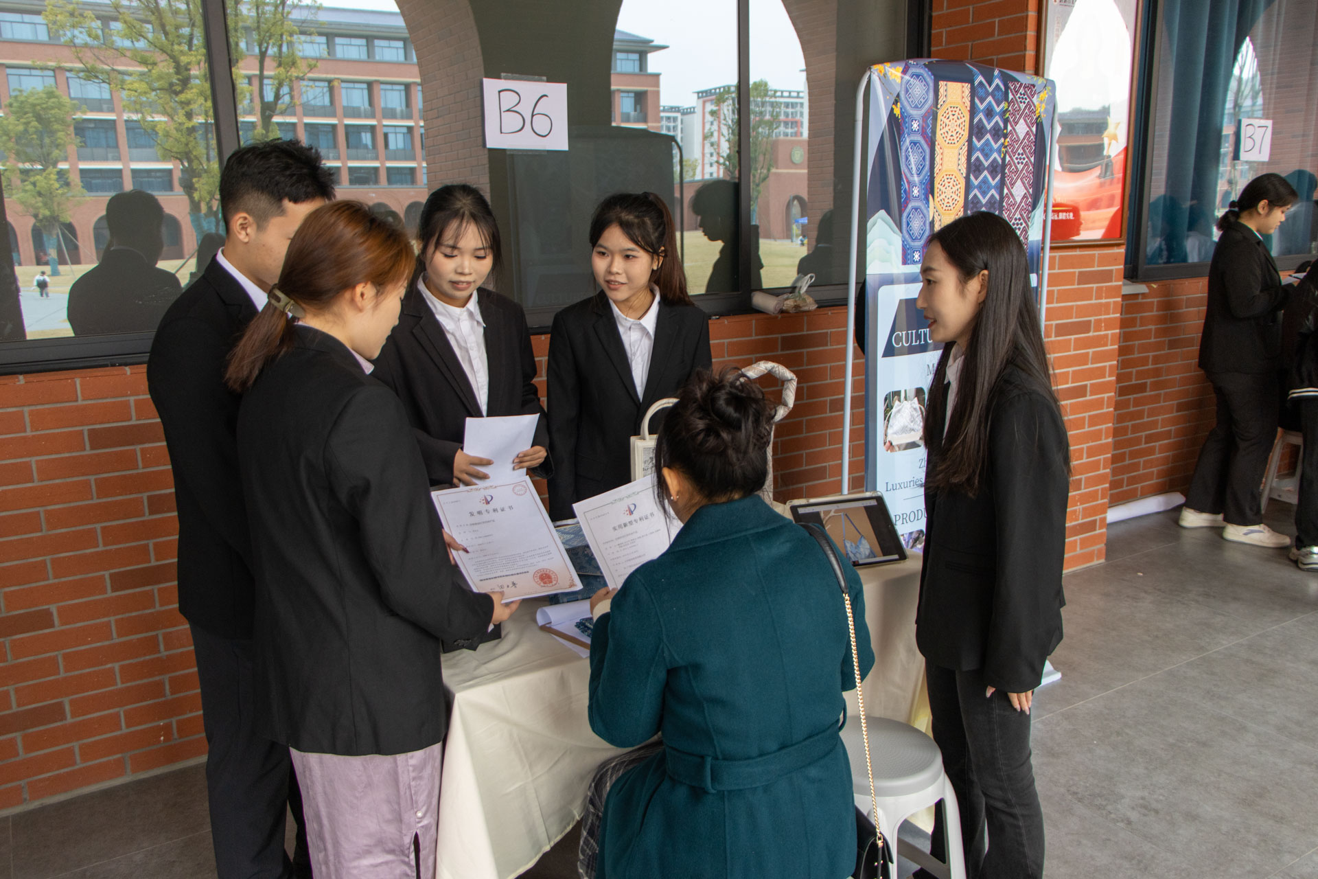 本次大赛内容涵盖新产品发布会、国际贸易模拟商贸配对贸易谈判、展位设计三个部分,竞赛语言为英语。在产品发布会上,各参赛团队化身出口企业代表,他们以独具匠心的方式推介产品,以富有感染力的表达,成功地向观众传达了产品的核心优势和市场价值。