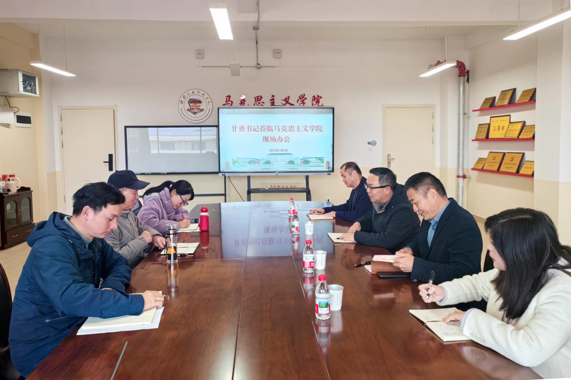 学校党委书记甘勇到马克思主义学院召开现场办公会
