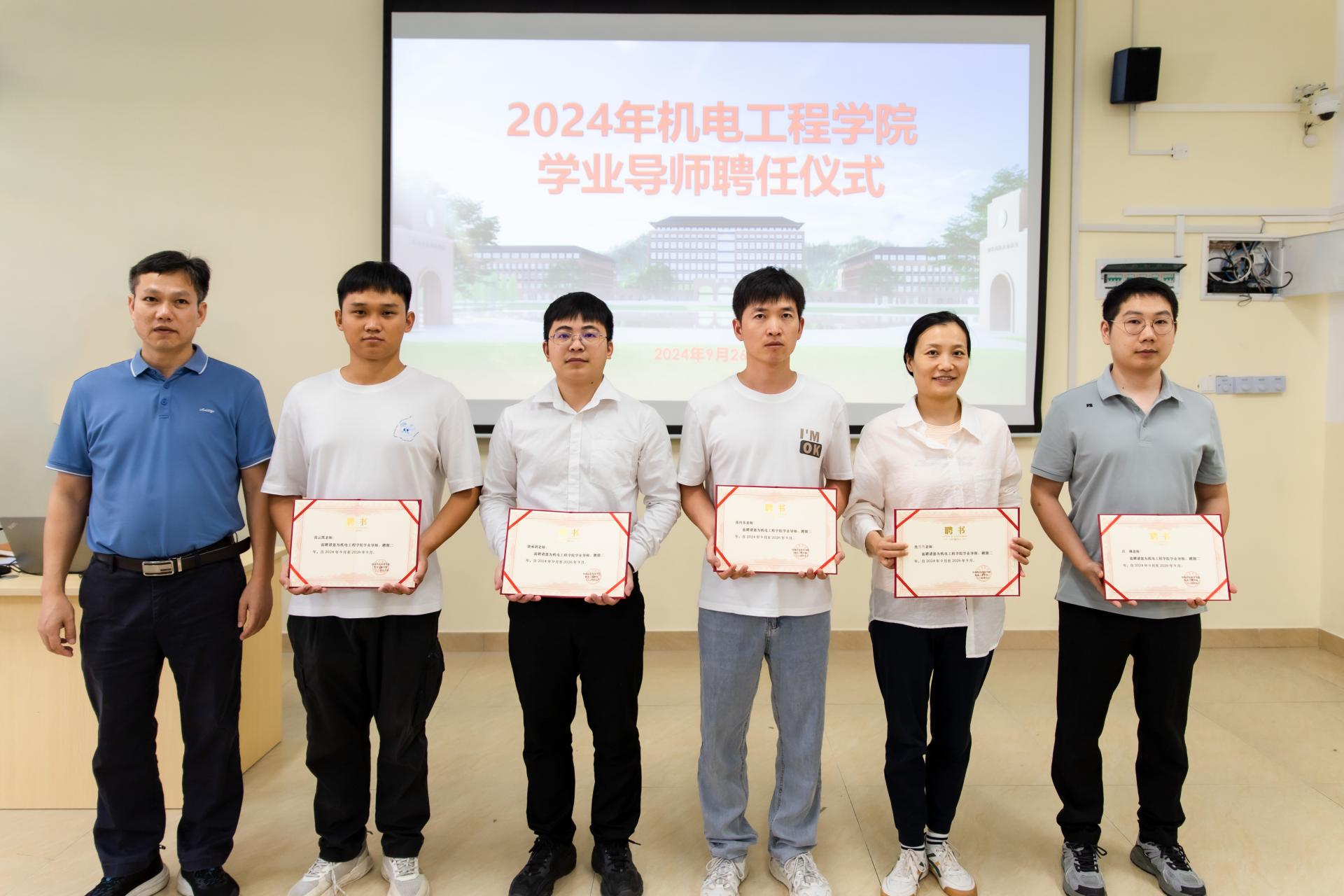 为贯彻落实立德树人的根本任务,突出教学中心、学生中心以及学习中心的重要地位,强化专任教师对学生在思想引领等方面的作用,全力促进学生全面发展,切实提高人才培养质量,机电工程学院于9月26日中午在C103教室举行机电工程学院2024年学业导师聘任仪式,学院全体领导班子、全体教研室主任、全体新生班级辅导员、全体学业导师以及新生班级代表齐聚一堂,共同见证这一重要时刻。仪式由学院党委书记文超主持。