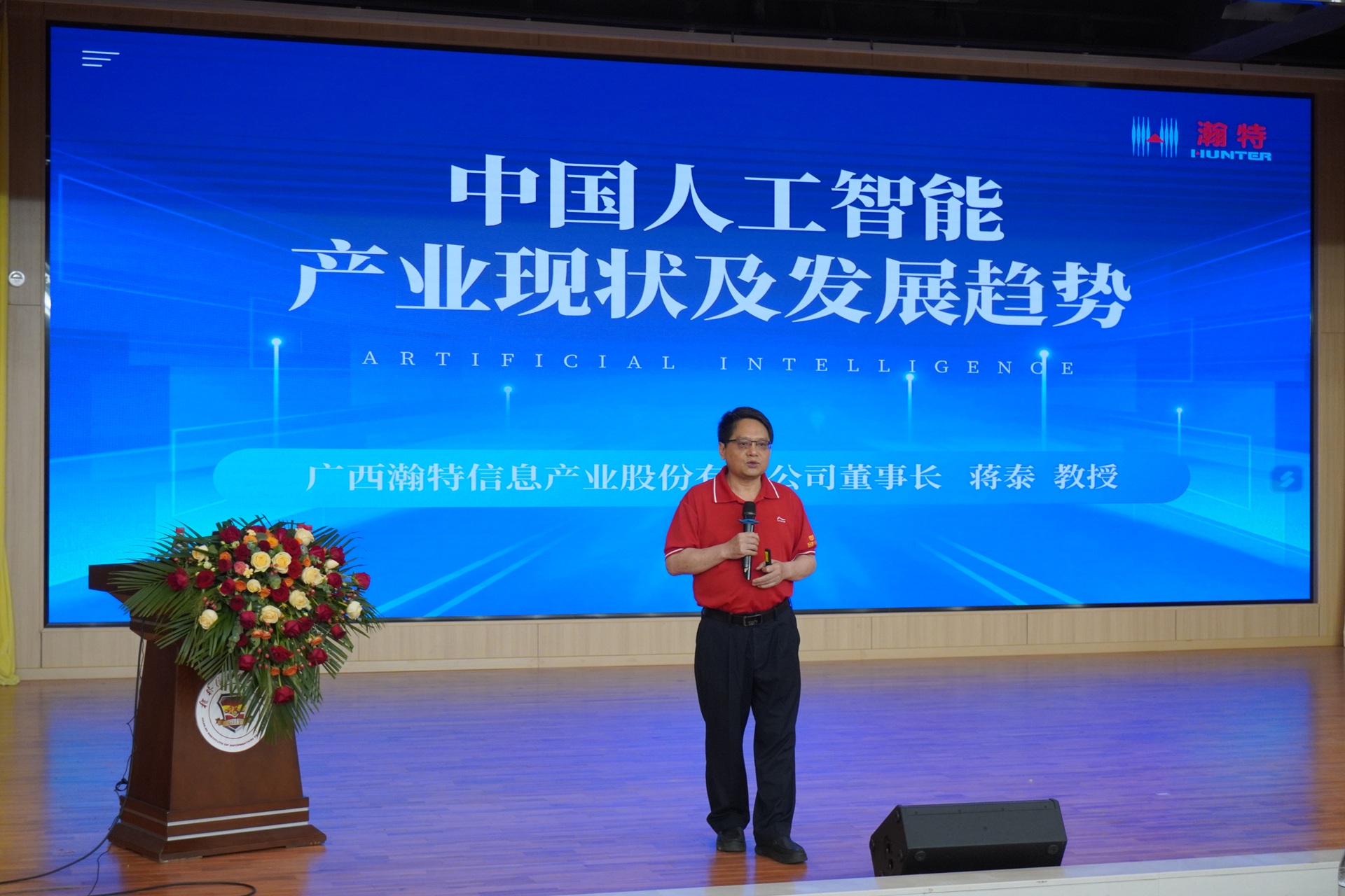 5月14日,信息工程学院于F107报告厅开展“人工智能产业现状及发展趋势”专题讲座。本次讲座特邀广西瀚特信息产业股份有限公司董事长蒋泰教授亲临现场,各学院学生代表参加。