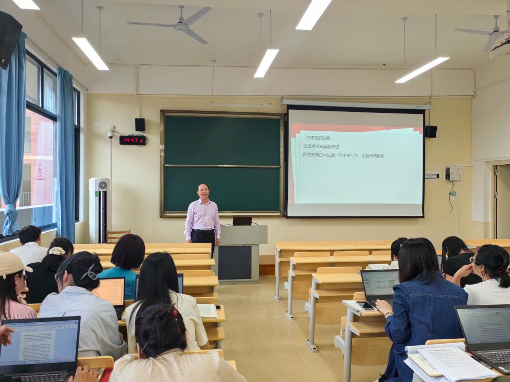 邱启照院长围绕“师生关系”这一主题作讲座,就“良好师生关系在教学中的意义”、“如何构建良好师生关系”等具体问题作出细致分享。邱院长提出了“师生关系融洽友好的教学理念”,指出良好的师生关系能够使学生更快融入课堂,在收获知识的同时增进学生心灵上的成长。邱院长强调教学要始终以学生为中心,老师的工作是为学生解答知识、思想上的困惑,帮助学生成长,还鼓励老师们在讲课过程中要充满热情,营造轻松的课堂氛围,与学生关系要有张有弛,主动走进学生,做到严管中有关爱。