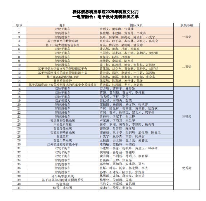 决赛当天,于飞老师对评审标准进行了统一讲解。12位评委从技术创新、工程实现、现场答辩三个维度对作品进行评审,确保赛事全程公平、公正、公开。最后,《双轮平衡车》、《智能履带车》、《基于物联网的数控电源》等41个项目脱颖而出,分别斩获一等奖5项、二等奖10项、三等奖15项及优秀奖11项。这些作品不仅展现了学生扎实的专业基础,更体现了他们将人工智能、物联网等新技术融入电子设计的创新意识。赛后,广州粤嵌通信科技股份有限公司广西区总经理岳汶华为获奖团队颁奖,并在闭幕式上宣布启动“2025年第九期粤嵌创客训练营”,面向全校招募嵌入式、Linux、人工智能交互等方向的学员,进一步推动校企协同育人走深走实。