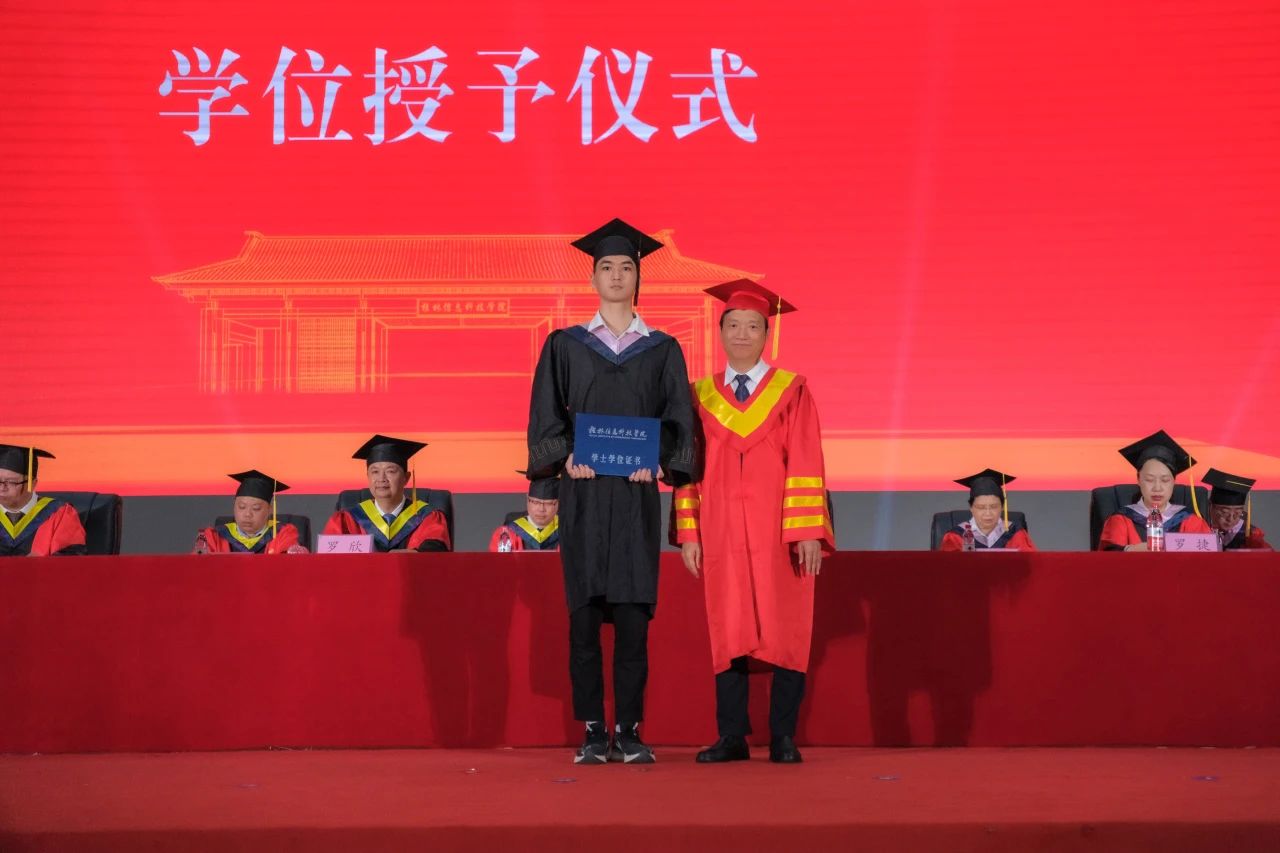 机电工程学院2025届毕业生成保安同学作为代表全体毕业生在毕业典礼上发言,深情回顾了在信科求学期间的成长故事与难忘经历。商学院谢如欢老师作为教师代表上台发言为 2025届毕业生送上诚挚祝福,并勉励毕业生传承信科精神,勇担时代使命,以奋进之姿书写精彩篇章。