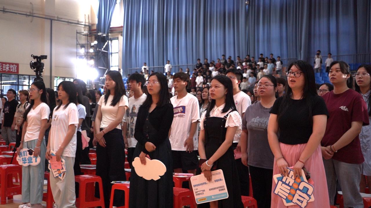 典礼最后,全体师生齐唱校歌《信科扬帆》,在悠扬旋律中饱含对母校的眷恋与对未来的憧憬,为典礼画上圆满句号。