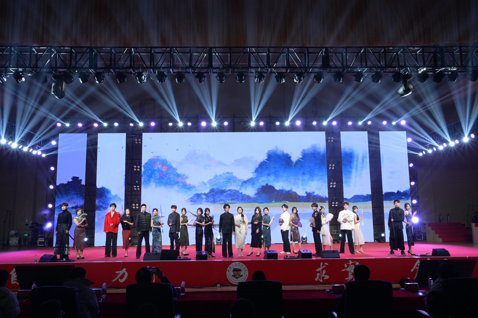 晚会在器乐《万疆》的激昂旋律中拉开序幕,古筝清韵与鼓乐雄浑交织,奏响青春乐章;舞蹈《醉春风》以优美舞姿演绎俏、羞、媚、喜,传递着生机活力;情景朗诵《四季更迭之年轻的朋友来相会》以四季节气为线索,深情讲述学校变迁;礼仪课的学生们身着华美服饰,精彩演绎《新中式走秀》,为观众带来了一场视觉与听觉的双重盛宴;小品《遇人不赎》情节跌宕,引人深思,让观众在欢笑中感悟人性;合唱《灯火里的中国》将晚会推向高潮,同学们用歌声描绘灯火阑珊下的幸福中国,展现时代风貌,绽放梦想与才华。