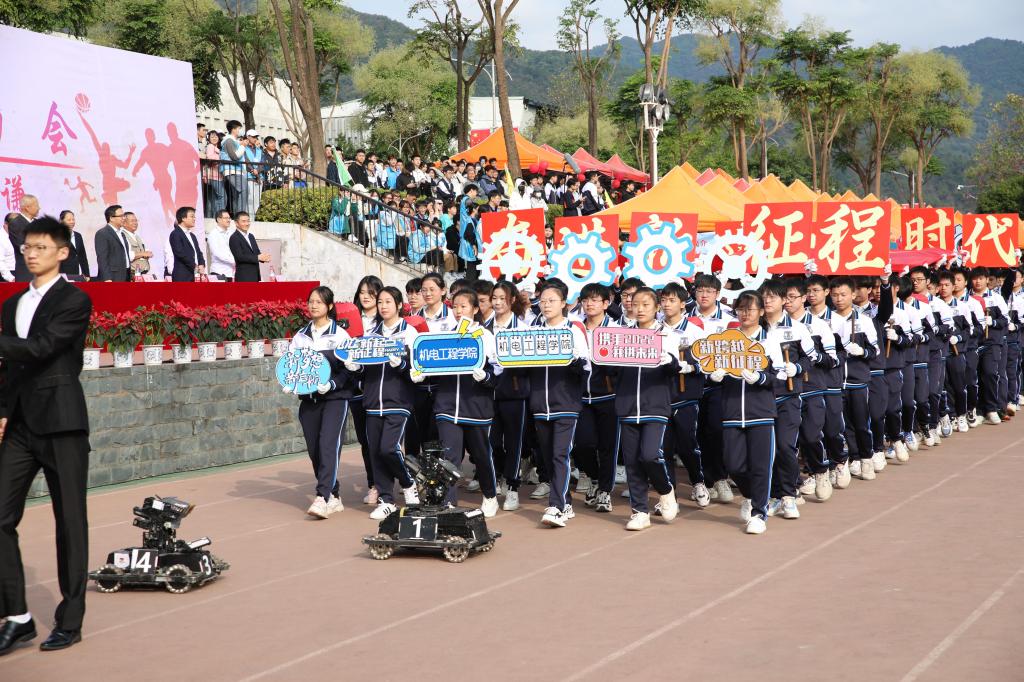 陈智勇副校长致开幕词。他指出,学校高度重视体育事业的发展,始终秉持“以体育智、以体育心”的理念,将体育精神融入立德树人根本任务,培养学生爱国、集体和社会主义精神以及奋发向上、顽强拼搏的意志品质。陈智勇强调,每一届运动会不仅是学校体育工作的一次大检阅,更是广大师生精神面貌和综合素质的一次集中展示,希望全体运动员、裁判员能够严守各项规则,做到公平公正公开,发扬“和平、友谊、公平、进步”的奥林匹克精神,以奋斗者的姿态,抢抓机遇、团结拼搏,共同为建成电子信息特色鲜明的高水平应用型大学“信科梦”而努力奋斗!