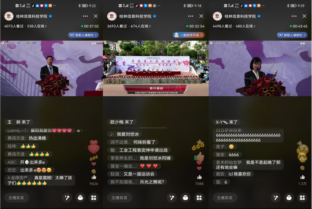 据悉,本届运动会将持续两天,共有学生组代表队7支、教工组代表队10支参赛。学校融媒体中心也将通过官方视频号、抖音号和Bliblili平台采用无人机、摄像机等全媒体技术方向为广大师生和校友们提供全景直播服务;根据学校官方直播分段数据显示,学校官方平台直播收看人数持续在两万人次,全方位立体式展示了信科师生良好的精神风貌。