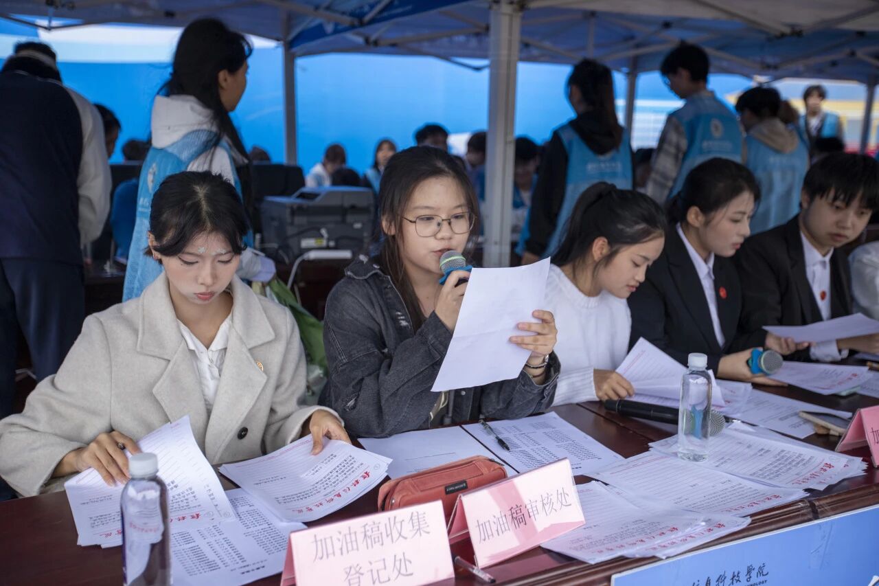 闭幕式上,运动会总裁判长周勇宣布了第五届运动会各项比赛成绩,主席台领导分别为获奖团队和个人进行颁奖。
