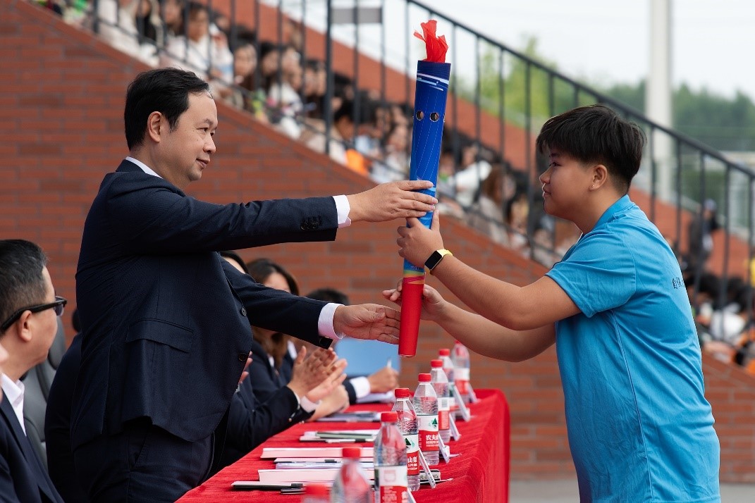 在庄严的升国旗仪式后,校长解庆林致开幕词。他强调,体育是“五育并举”的重要组成部分,学校高度重视体育教育,始终秉持“以终为始、以生为本”的办学理念,不断完善体育设施、优化教学条件,全力推动体育事业发展,助力学生德智体美劳全面发展。解庆林表示,运动会是全校年度体育盛事,既是速度与力量的较量,也是体育精神的展现。他希望运动员们发扬奥林匹克精神,赛出风格与水平;裁判员们秉持公平公正公开原则,保障赛事顺利进行;全校师生能借此契机积极参与体育锻炼,让“爱信科、爱运动”的理念深入人心。