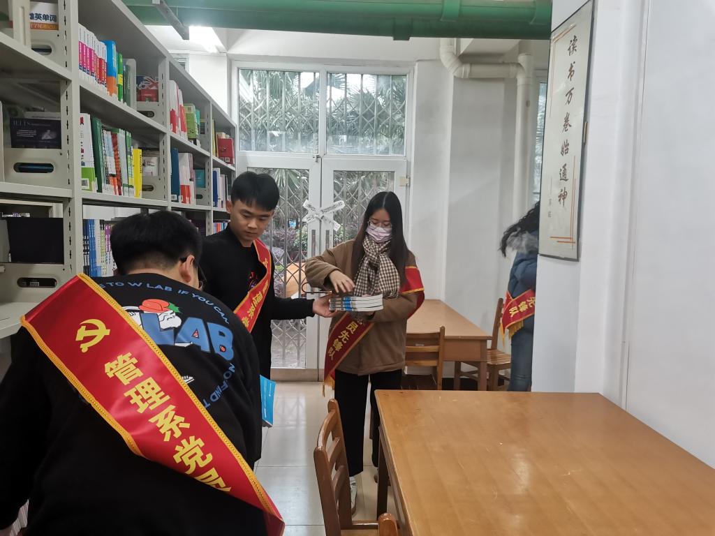 为了提高党员先锋队的服务能力,发挥管理系党员先锋队的“头雁精神”,12月8日-12月17日,管理系党员先锋队组织全体学生党员在二号公寓图书室开展了为期十天的图书志愿服务活动,共120人次参加此次活动。