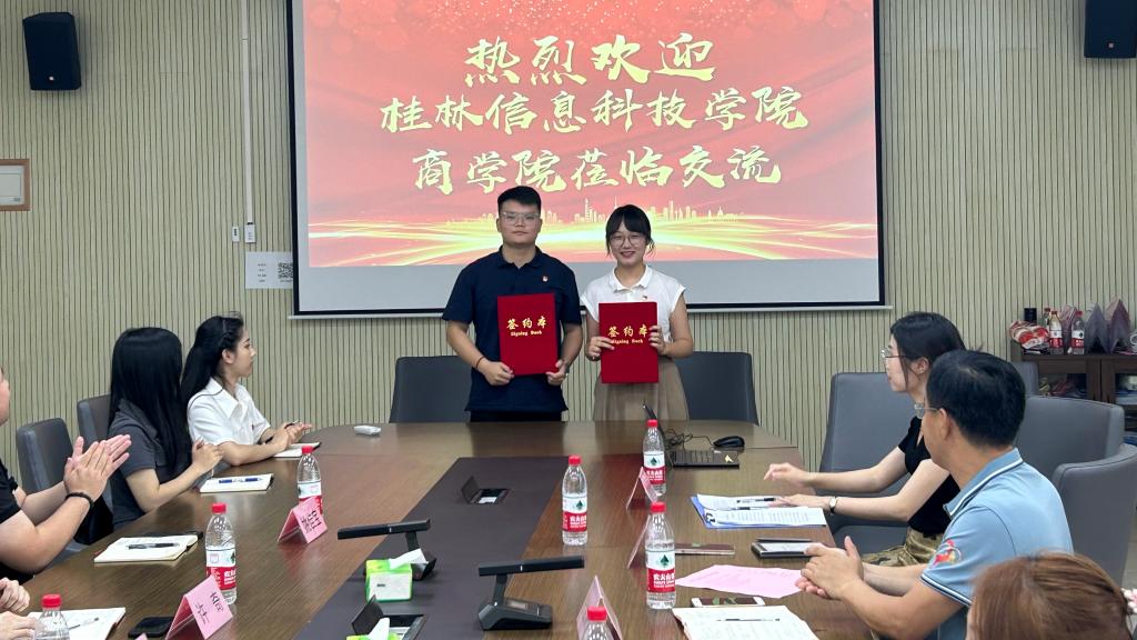 为探索高校学生党支部党建发展新模式,6月3日,商学院第一学生党支部与桂林电子科技大学商学院本科生第五党支部举行党建共建签约仪式。桂林电子科技大学商学院党委书记张金顺,组织员唐璐、本科生第五党支部书记秦玮苡、杨科璋党支部书记高靖添,beat365商学院党委书记许奇,第一学生党支部书记袁喆,以及双方党支部代表参加会议。