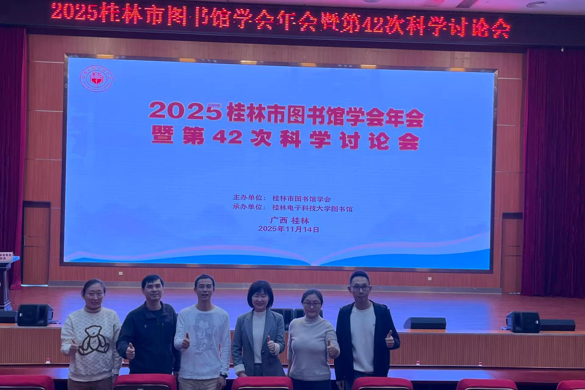 11月14日,桂林市图书馆学会2025年年会暨第42次科学讨论会在桂林电子科技大学花江校区图书馆举行。学校图书馆馆长申琍带队一行6人参加了会议。