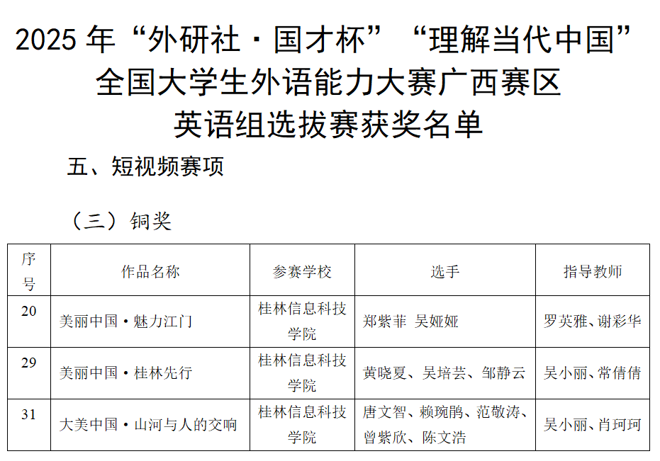 【喜讯】beat365学子在2025年“外研社·国才杯”“理解当代中国”全国大学生外语能力大赛(广西赛区)中荣获佳绩