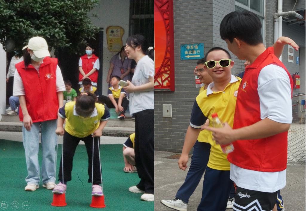 志愿者与学生一同参加了融合趣味运动会