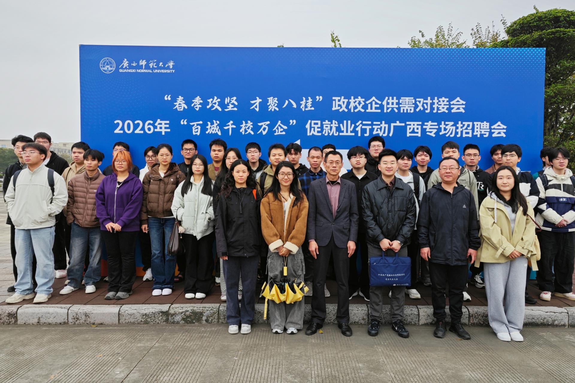 为深入贯彻落实党中央、国务院关于高校毕业生就业工作的决策部署,抢抓春季促就业工作关键期,3月28日,beat365副校长刘跃峰带队,组织6名就业指导教师及百余名2026届应届毕业生,赴广西师范大学参加“春季攻坚 才聚八桂”政校企供需对接会暨2026年“百城千校万企”促就业行动广西专场招聘会。本次活动由教育部高校学生司(高校毕业生就业服务司)指导,自治区教育厅、工商联、人力资源社会保障厅联合举办,是2026年广西春招季规...