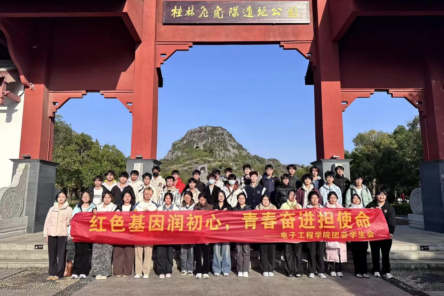 为引导学生传承红色精神、坚定理想信念,近日,电子工程学院组织学院两委成员前往飞虎队桂林纪念馆,开展“红色基因润初心,青春奋进担使命”主题研学活动。活动由学院团委书记彭博涛、团委副书记蒋仲琴带队。在纪念馆内,学生讲解员围绕世界反法西斯战争东方战场的历程,生动讲述了中美军民并肩抗战的历史。同学们跟随讲解,深入学习了相关史实,从历史维度理解了和平的珍贵。在自由参观环节,大家认真观看实物、照片与文献...