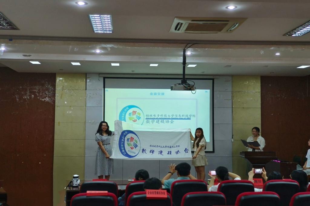 大会第二项,进行第十四届主席代表做工作总结,第十五届数学建模协会学新任主席陈月、卢天祥以及新任部长自我介绍及工作展望,介绍完毕之后第十四届主席代表和第十五届主席代表进行了会旗对接仪式,最后数学教研部舒常江老师进行了寄语总结,会议结束全体成员进行了合影留念。