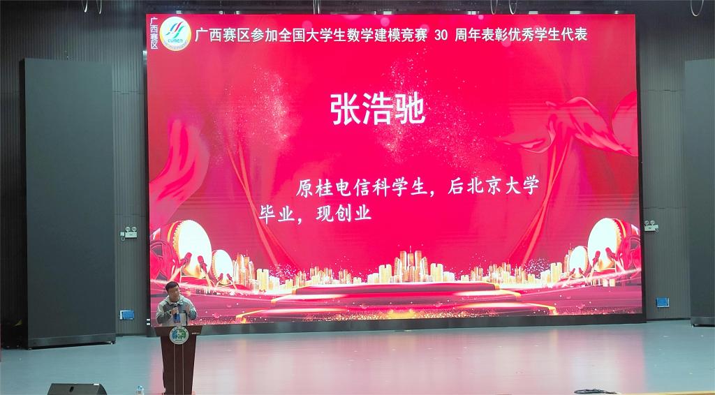 本次庆典活动不仅对23年广西赛区建模工作进行了总结,还对长期以来为数学建模科研,教学与竞赛活动作出重要贡献的教师、23年获国奖学生及其他优秀人才进行了表彰,beat36518届毕业生张浩驰作为优秀学生代表发言。同时为庆祝广西赛区参加全国大学生数学建模竞赛30周年,现场还举行了30周年庆典联欢晚会。