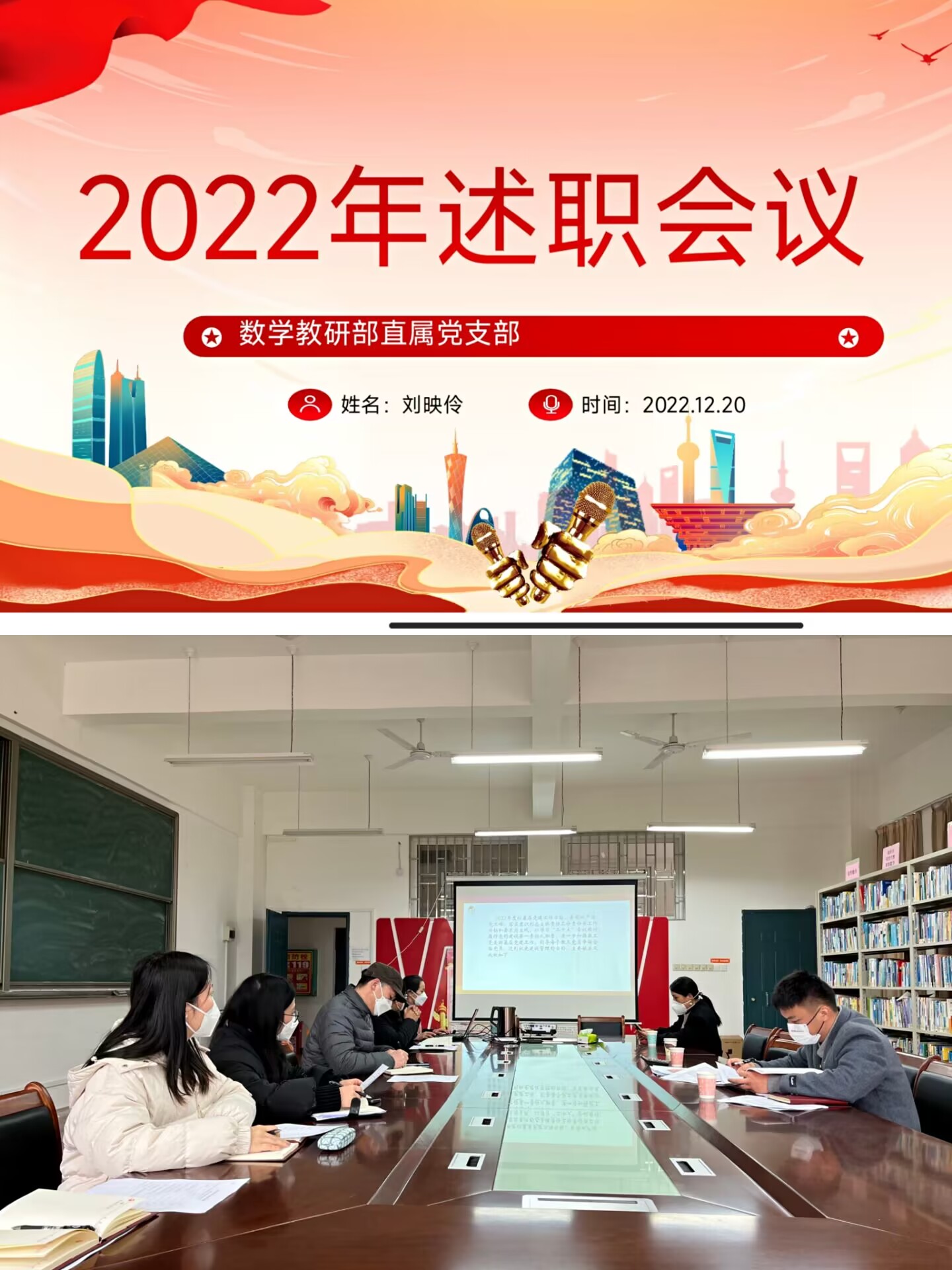 为进一步促进支部党建工作,1220午,数学教研部直属党支部在21213会议室开展2022年度支部书记述职会议。学校党群事务部王南萍部长等人列席会议,数学教研部直属党支部全体党员参加