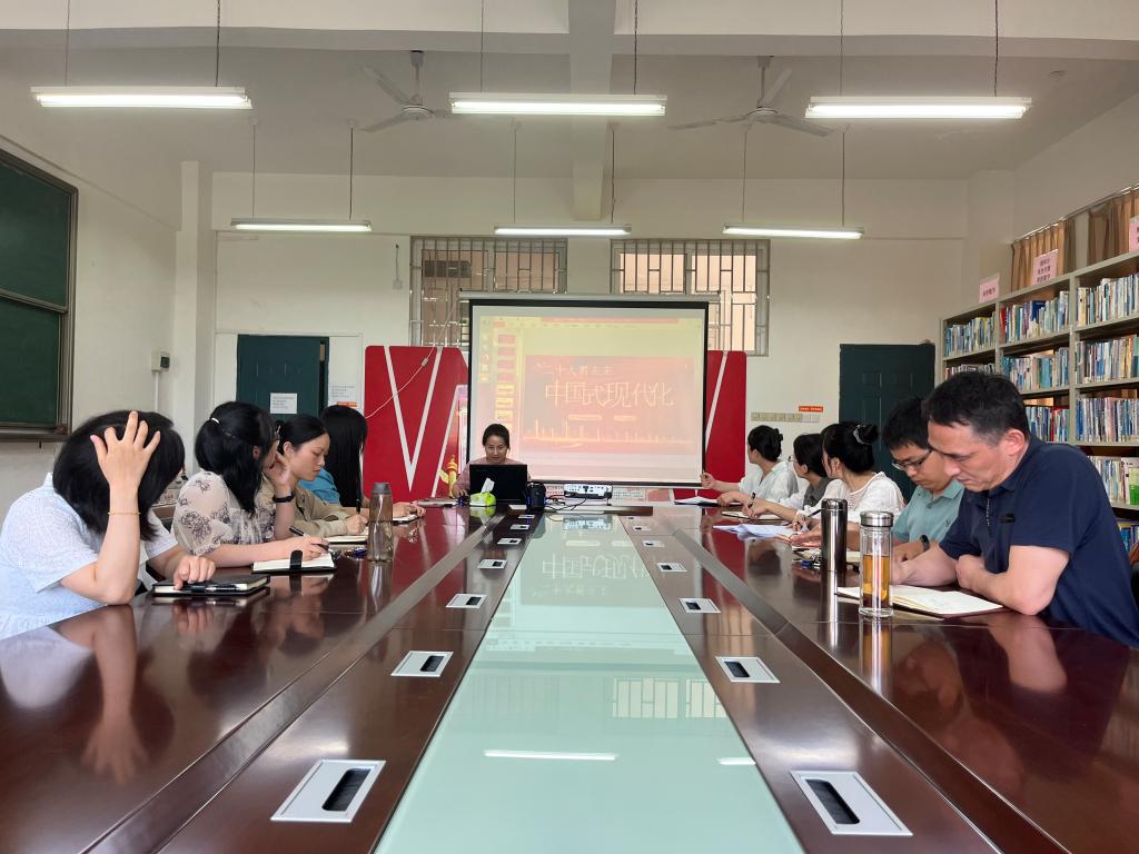 为学深悟透党的二十大精神,进一步引导党员干部把思想、认识和行动统一到学习宣传贯彻党的二十大精神上,更好发挥支部的战斗堡垒作用。5月18日下午,数学教研部教工党支部在21213会议室开展学习党的二十大精神专题党课,刘映伶书记以“中国式现代化”为主题开讲,支部全体党员参加了本次学习。