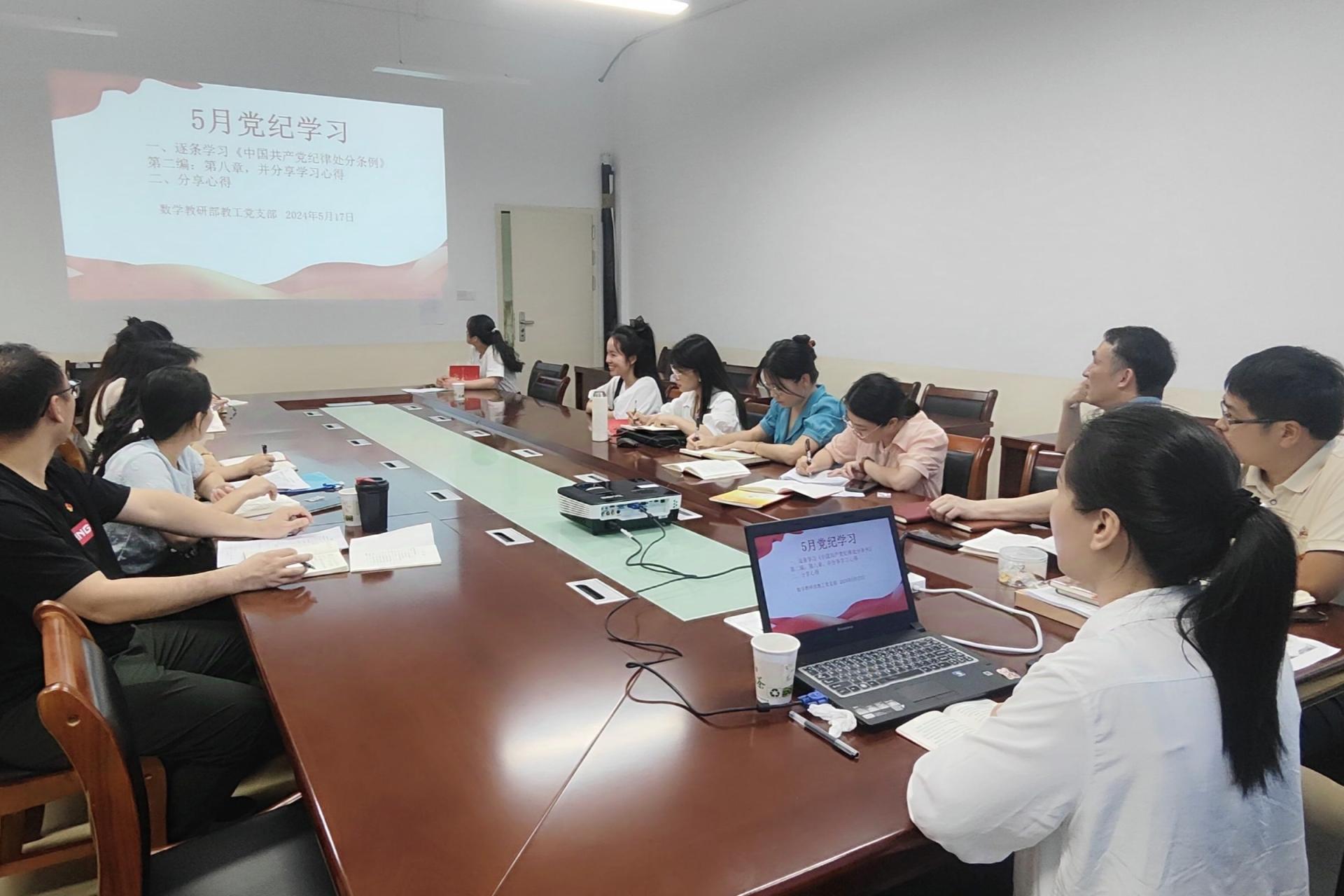 5月17日,数学教研部教工党支部在博文楼F525会议室开展了《中国共产党纪律处分条例》学习活动。本次会议由数学教研部教工党支部书记刘映伶主持,数学教研部全体党员参会。