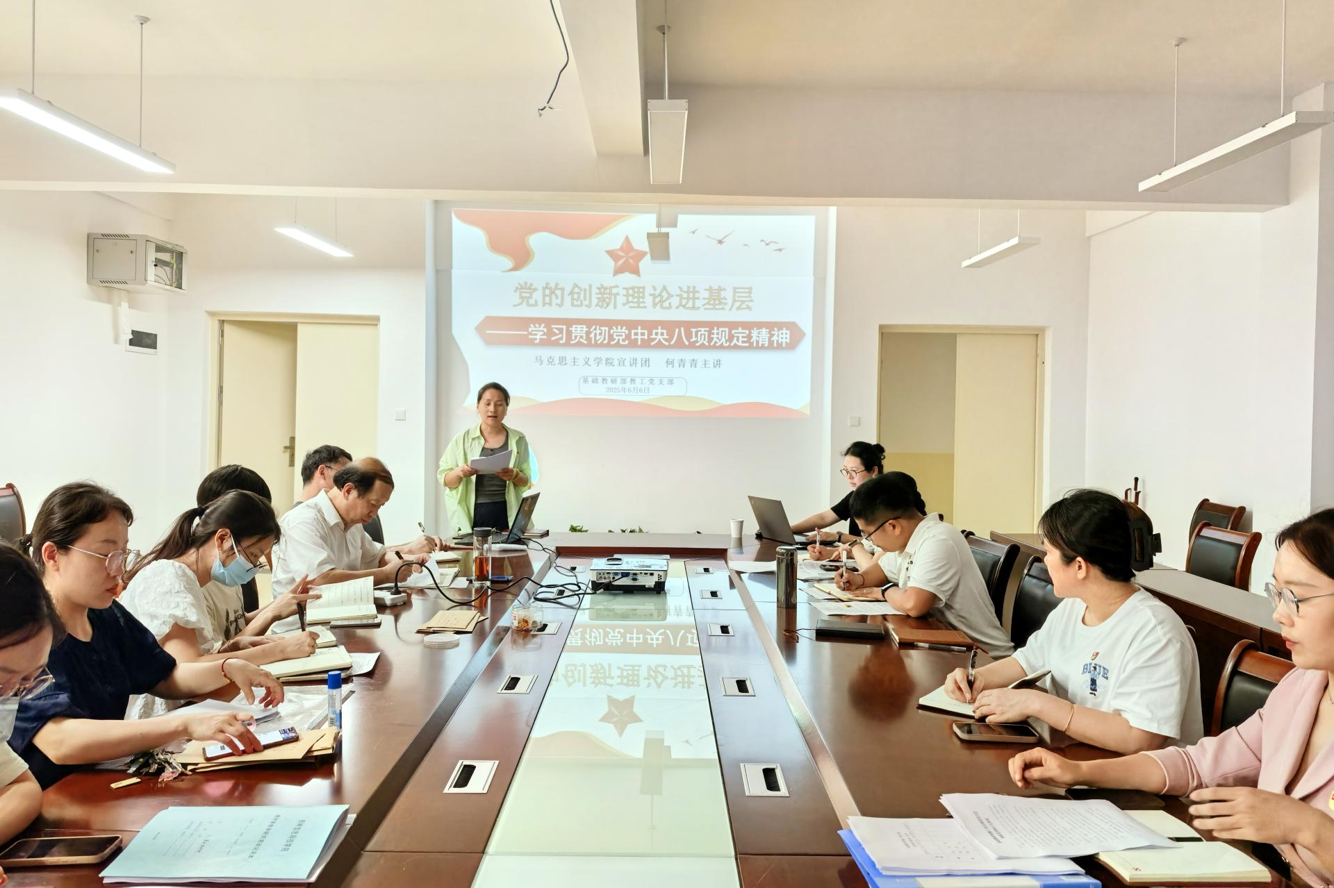 为深入学习贯彻党的二十届三中全会精神,全面落实新时代党的建设总要求,紧密结合beat365高质量发展目标任务和党员队伍建设实际需求,6月6日,基础教研部教工党支部在汇通楼H504会议室成功开展2025年党的创新理论进基层宣讲活动。此次活动由教工党支部书记刘映伶主持,马克思主义学院何青青老师担任主讲,基础教研部教工党支部全体党员积极参会。