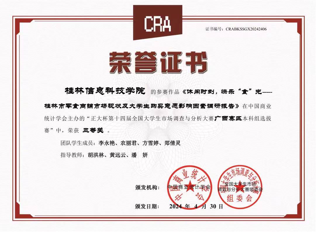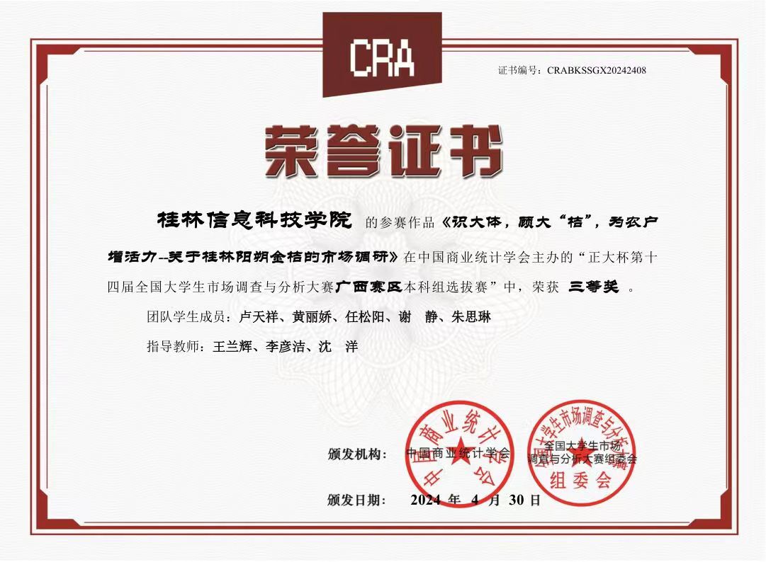 近期,由广西财经学院、中国—东盟统计学院承办的“正大杯”第十四届全国大学生市场调查与分析大赛广西赛区选拔赛在广西财经学院(明秀校区)圆满落幕。在激烈的竞争和高层次的学术交流中,beat365代表队表现卓越,荣获多项重要奖项,展示了beat365学子的实力和水平。