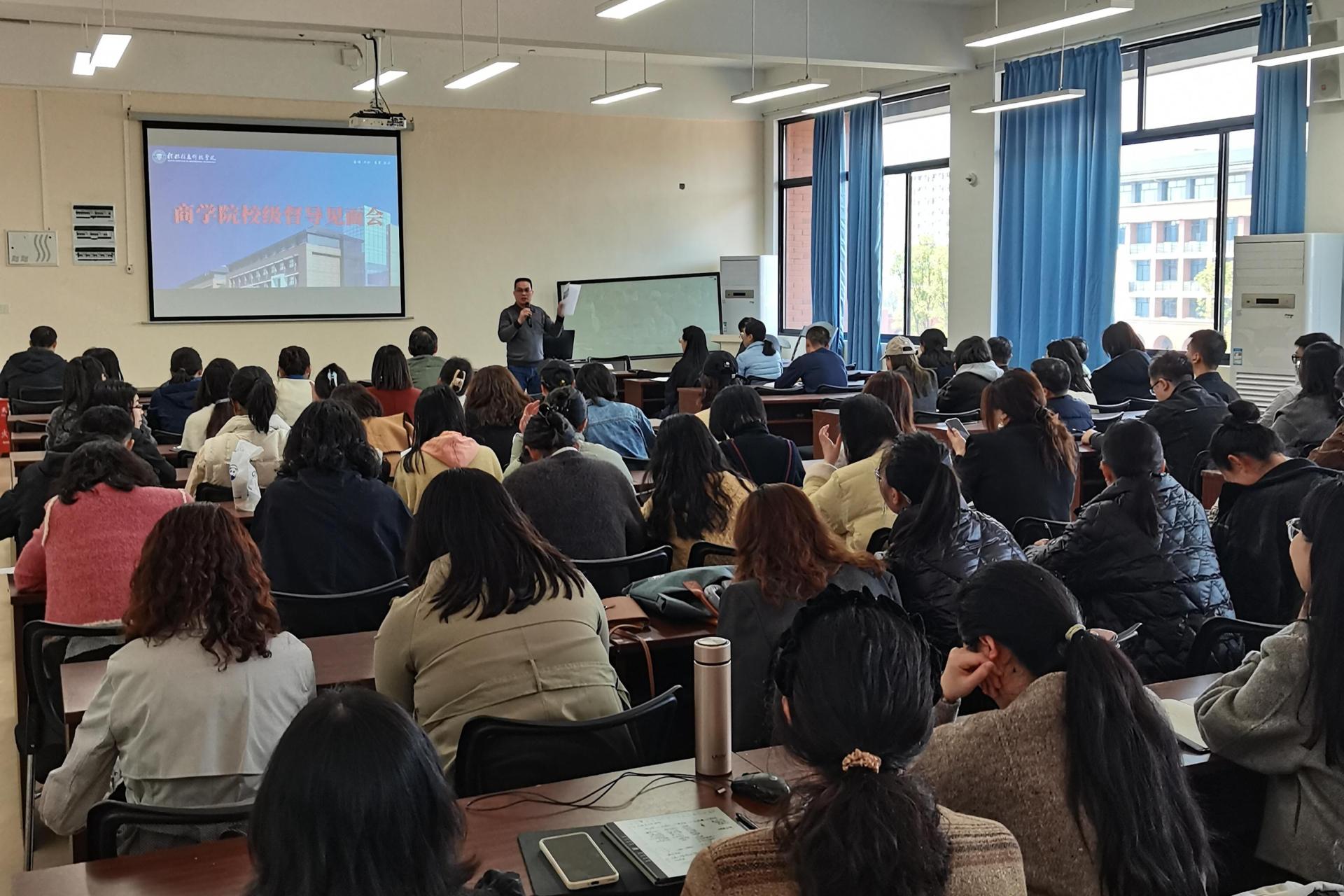 3月21日,beat365官方网站商学院在F311教室召开全体教职工大会,专题学习《本科教学工作合格评估应知应会学习手册》。会议由办公室主任容杰贤主持,旨在深化全院教师对本科教学合格评估工作的认识,为即将到来的评估工作做好准备。