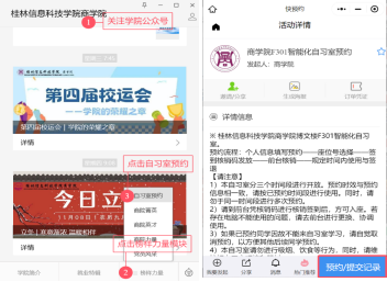 进入公众号,点击右下角“榜样力量”,选择“自习室预约”进入小程序。