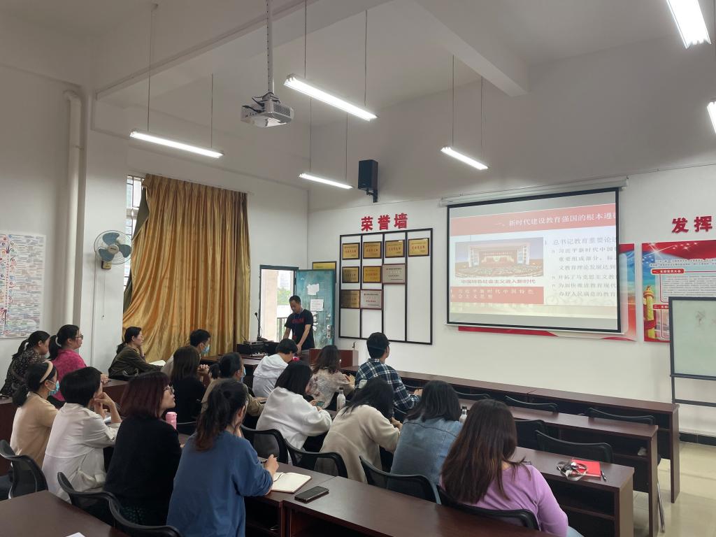 本次党课彭灿华老师围绕习近平总书记关于教育工作的重要论述,带大家从新时代建设教育强国的根本遵循、坚持把立德树人做为根本任务、坚持在日常教育管理中立德树人三个方面进行学习,给我们老师提出要求:1、在坚定理想信念上下功夫,教育引导学生树立远大理想;2、在厚植爱国主义情怀上下功夫,让爱国精神在学生中扎根;3、在加强品德修养上下功夫,教育引导学生践行社会主义核心价值观;4、在增长知识见识上下功夫,教育引导学生珍惜学习时光、心无旁骛求知问学;5、在培养奋斗精神上下功夫,教育引导学生树立高远志向敢于担当、不懈奋斗。