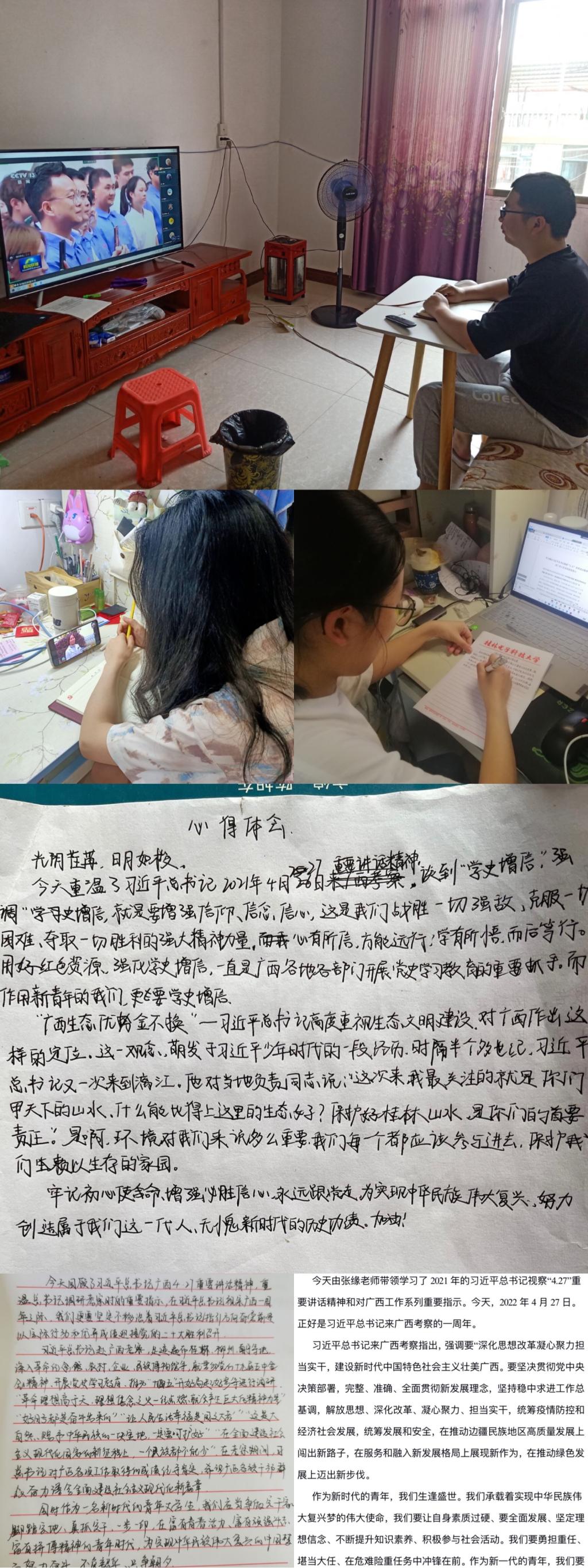 张缘老师在会议上带领同学们共同重温了习近平总书记在广西考察广西4.27讲话精神和相关考察视频,就并强调做为一名党员要赓续共产党人精神血脉,缅怀革命先烈,坚定理想信念,砥砺革命意志。会议强调,学习贯彻习近平总书记对广西工作一系列重要讲话、重要指示精神,是一个持续推进、不断深化的过程,要持续在“学懂”上下功夫,做到学以铸魂、学史增信、学以致用。会后进行了学习心得分享。学生党员邵琳娴谈到:“通过重新学习习近平总书记在广西考察的纪实,让我更明白了做为一名党员应该做的事情。”,学生党员贾祖一说到:“做为一名学生党员,我强烈感受到青春逢盛世,奋斗正当时。我们更应该坚定信念、勇于担当、善于作为。”