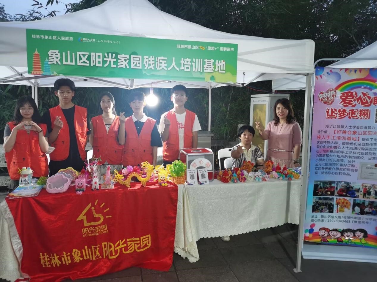 为了使更多的人认识残障人群,增强残障人士社会认同感,商学院分团委学生会带领大学生志愿者于5月19日晚前往象山社区通过摆摊方式进行现场义卖,义卖的物品都是残章人士亲手制作的小工艺品。