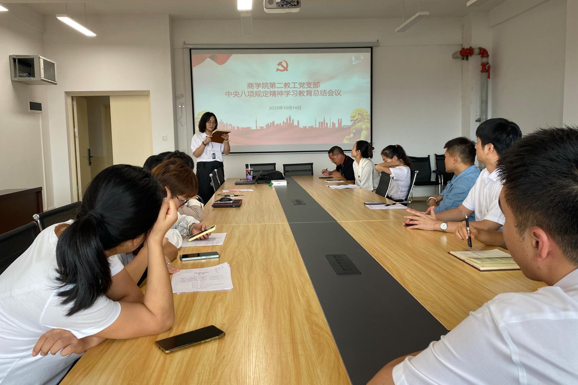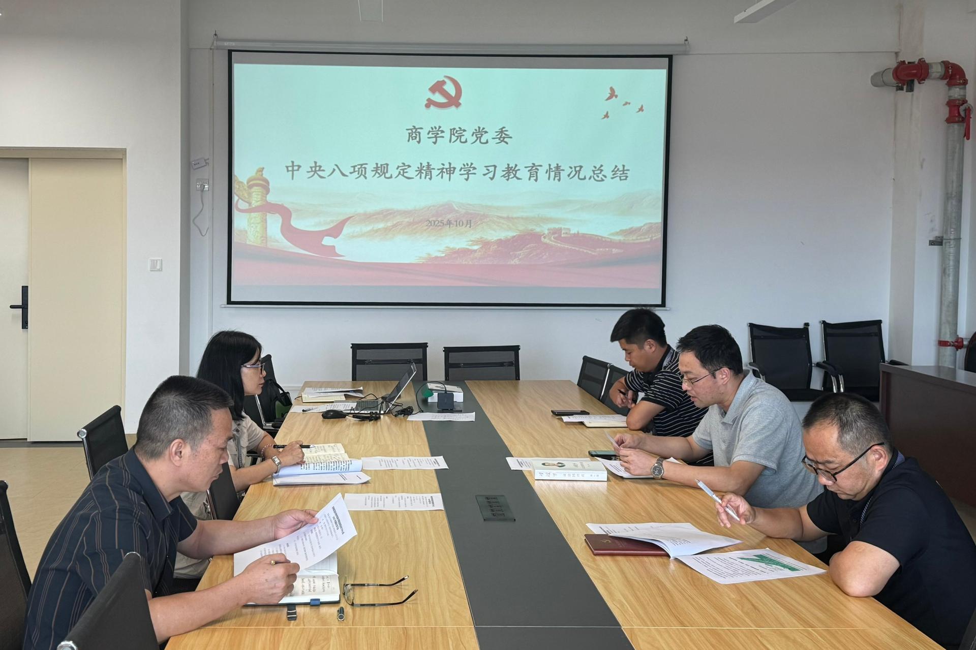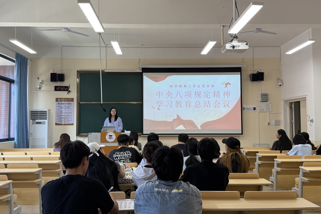 近日,商学院党委召开深入贯彻中央八项规定精神学习教育总结会议,全面回顾学习教育成效。学院党委和下设支部结合工作实际,深化问题查摆与整改落实,构建起“党委总结部署-支部细化落地-党员主动践行”的工作体系,推动作风建设向基层延伸。