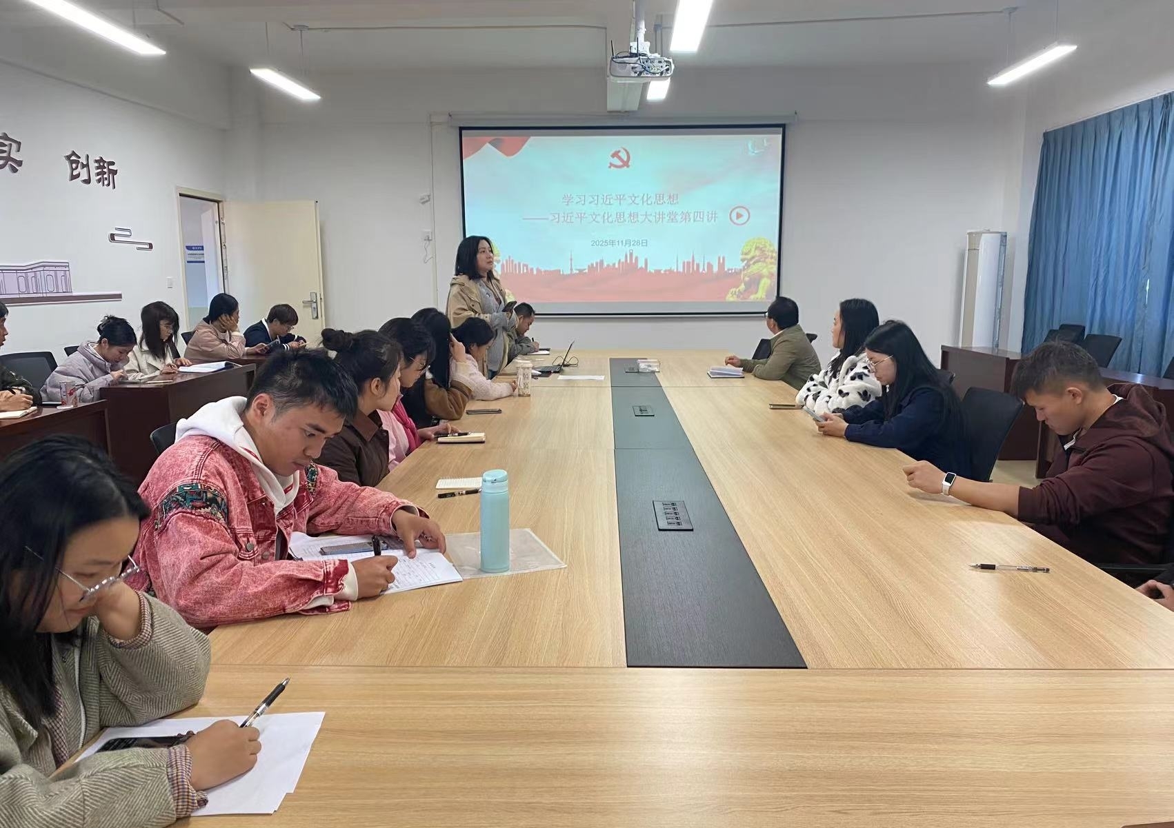 11月29日,商学院第二教工党支部组织全体党员在H621开展集体学习,集中观看“习近平文化思想大讲堂”第四讲内容,深入学习领会习近平总书记关于文化建设的重要论述。