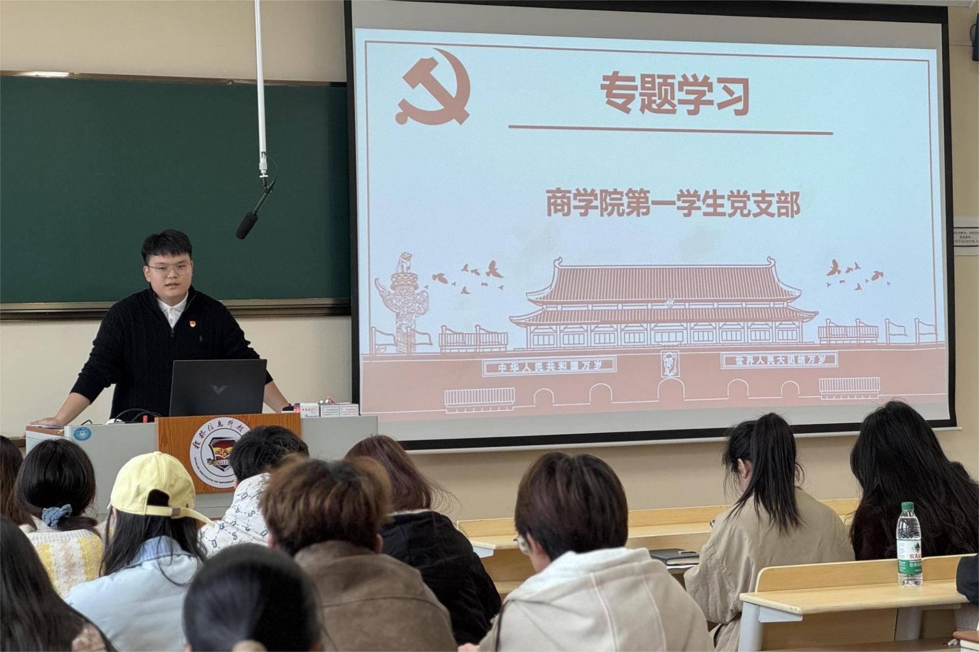 为推动“中国共产党人精神谱系”学习走深走实,引导青年群体从红色精神中汲取奋进力量,12月5日,商学院第一学生党支部在D406教室开展“传承‘两弹一星’精神,争做新时代青年先锋”主题宣讲活动。支部书记袁喆主持活动,支部党员、青年学生及团干代表共80余人参加。