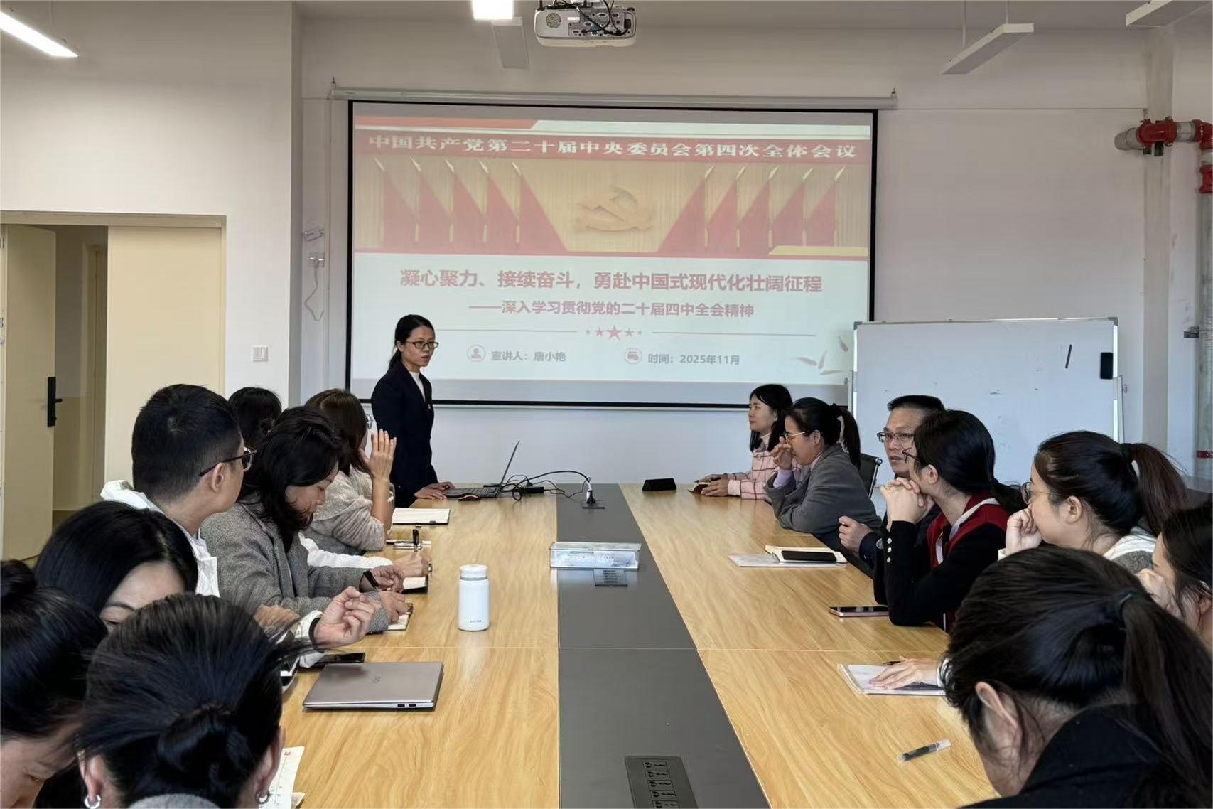 为深入学习贯彻党的二十届四中全会精神,11月28日,商学院第一教工党支部邀请马克思主义学院唐小艳老师,开展党的二十届四中全会精神专题学习,支部全体教工党员参与学习。