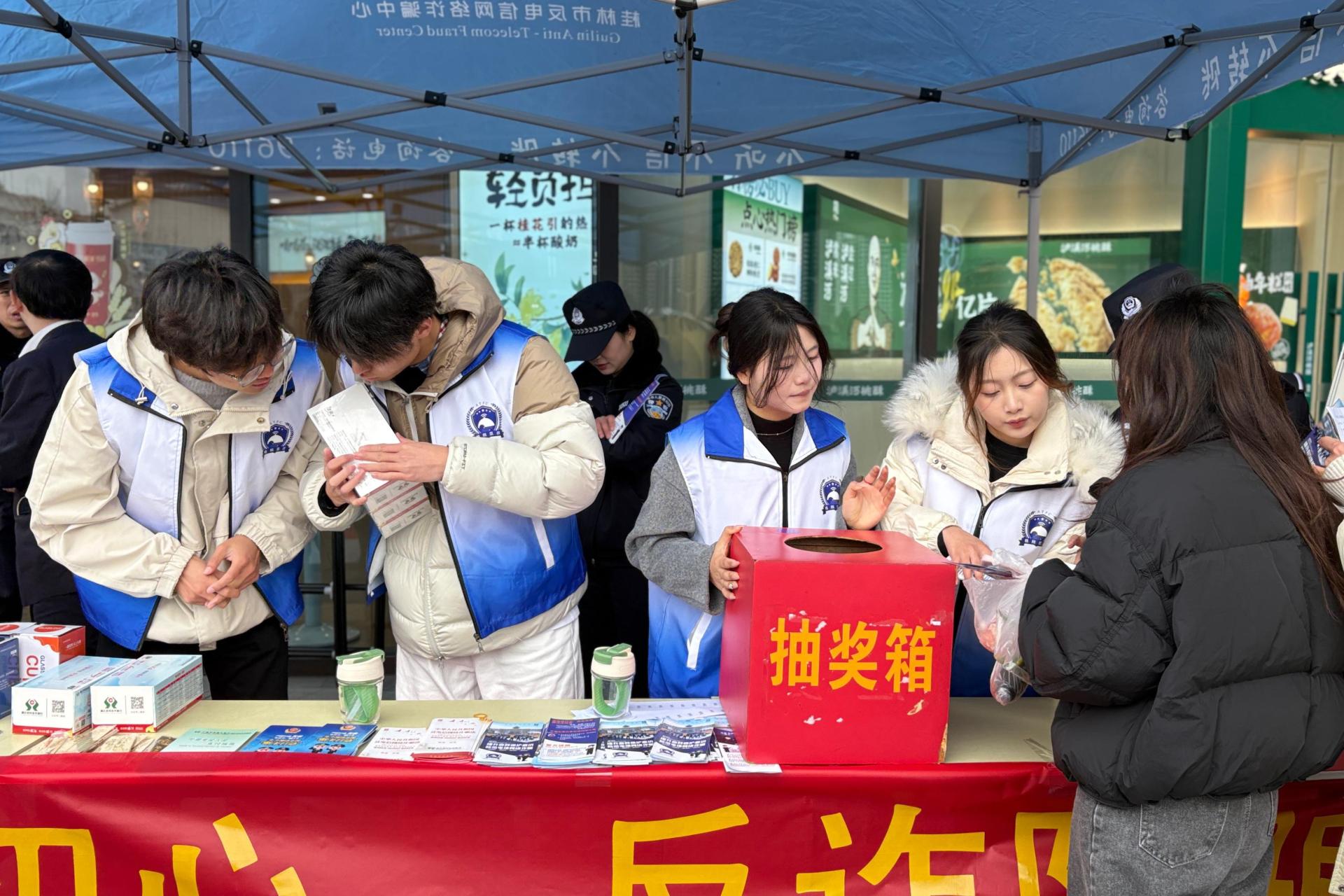 为传承雷锋精神,切实将反诈骗知识传递给社区居民,以实际行动彰显新时代大学生的社会责任感,3月5日,商学院组织师生在临桂区吾悦广场参加了由桂林团市委、桂林市反诈中心联合开展的“学雷锋纪念日暨第26个中国青年志愿者服务日”反电信网络诈骗公益活动。
