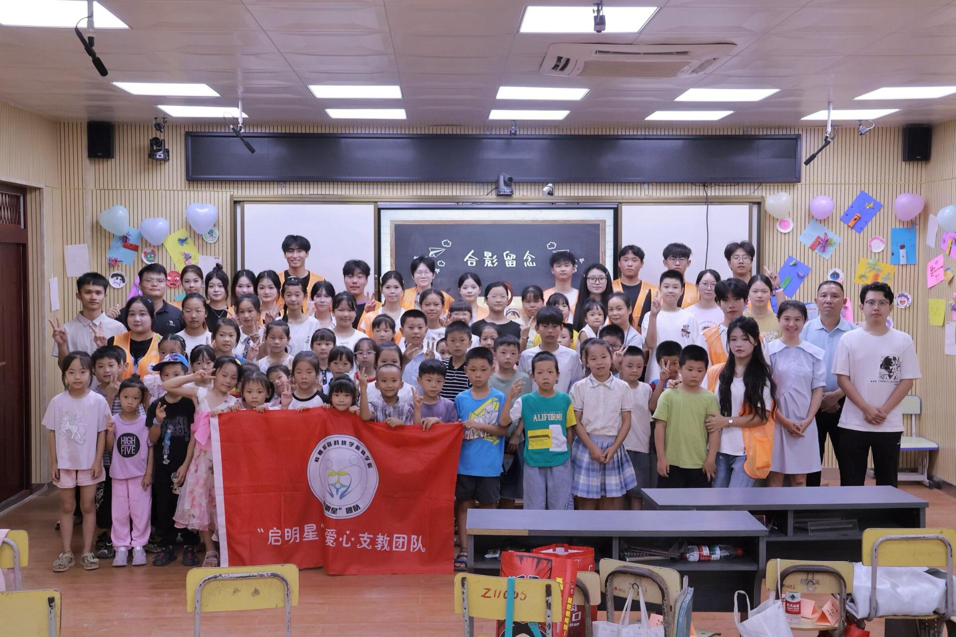 成果汇报环节,学生们通过朗诵《读中国》《给未来一片绿色》、合唱《中国少年先锋队队歌》、手语舞《你笑起来真好看》等精彩节目,充分展现了支教期间的学习成果。支教团队特别制作了成长纪念册和祝福视频,记录下孩子们从羞涩到自信的成长蜕变。朱初喜校长在致辞中高度评价支教团队,用专业与热情为乡村教育带来新活力,在孩子们眼中重新燃起的光亮,就是对此次活动最好的答卷。商学院“启明星”团队已连续第二年赴灵川县开展支教活动,累计服务时长超过500小时,深受当地师生和家长好评。团队负责人表示,未来将继续深化“扶志+扶智”的帮扶模式,探索教育帮扶长效机制。