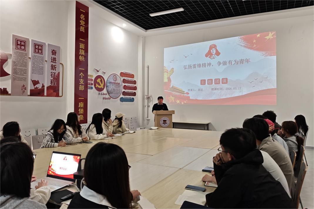 3月17日,商学院在崇德楼社区活动室开展“学雷锋”主题团课,深入推进雷锋月系列活动,引导青年学子传承雷锋精神,勇担时代使命。团课由学院团委书记袁喆主讲。