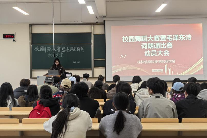 3月24日,商学院在D407教室召开毛泽东诗词朗诵表演比赛暨校园舞蹈大赛动员大会,充分调动参赛人员积极性,凝聚团队奋进力量。学院团委书记袁喆、副书记李玮萌、林深秋及全体参赛队员参加会议。