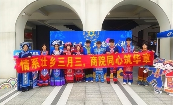 为铸牢中华民族共同体意识,推动广西三月三传统文化融入校园教育体系,4月14日,商学院于荟萃楼前举办“桂林山水颂 情系三月三”民俗文化活动。师生齐聚一堂,沉浸式体验民族文化魅力,共庆佳节。
