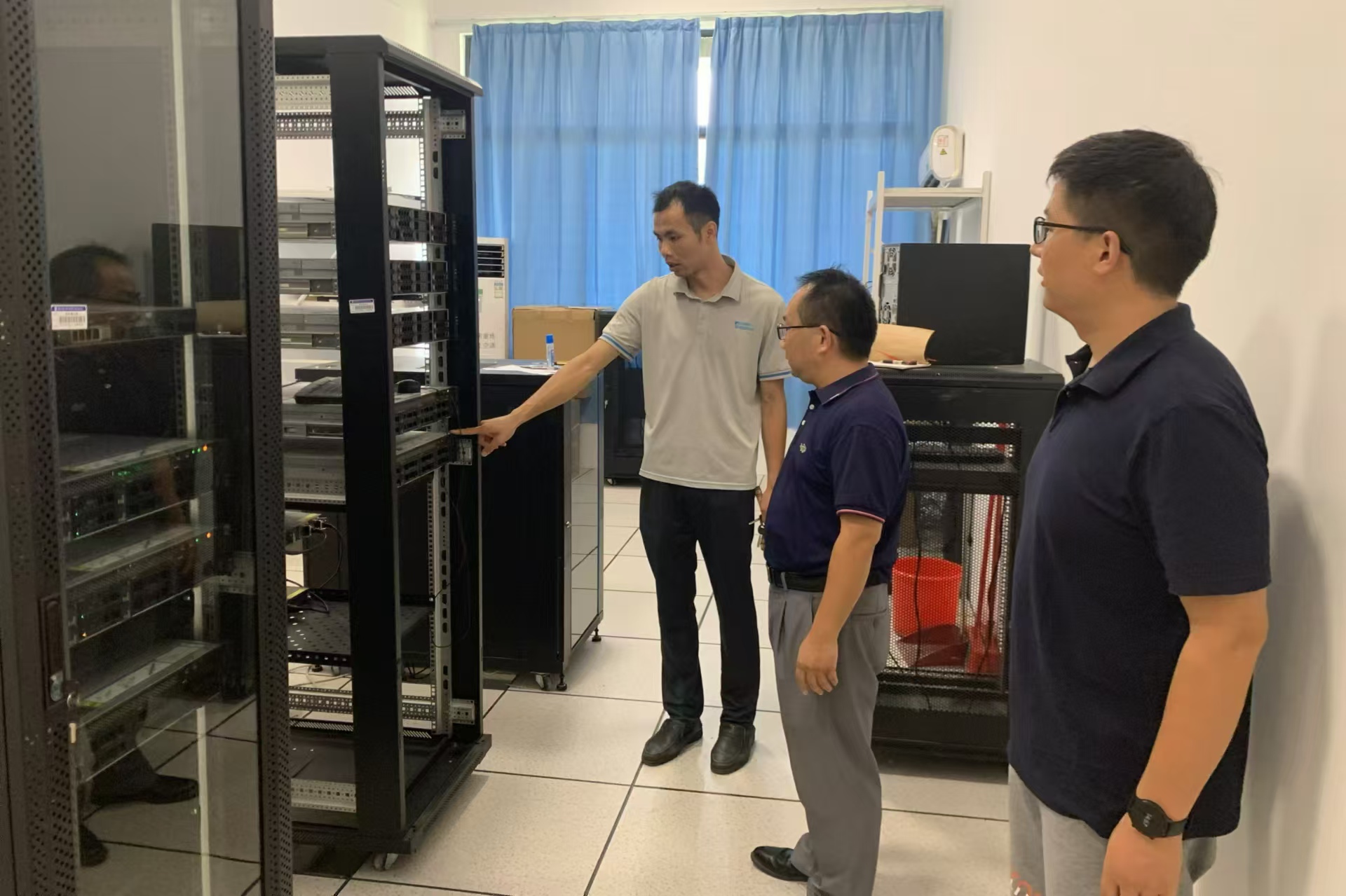 检查过程中,罗副院长一行秉持着高度负责的态度,对每一个实验室的资产进行了逐一核对,确保所有实验设备,数量准确、状态良好。同时,他们还重点检查了数据中心,从服务器的运行状态、安全性能、算力是否足够等方面,进行了全面的检查和确认,确保能满足实验教学的需求。此外,实验室的卫生情况也是此次检查的重点之一,他们仔细检查了实验室的清洁度、通风状况及消防设施,确保实验环境的安全与舒适。