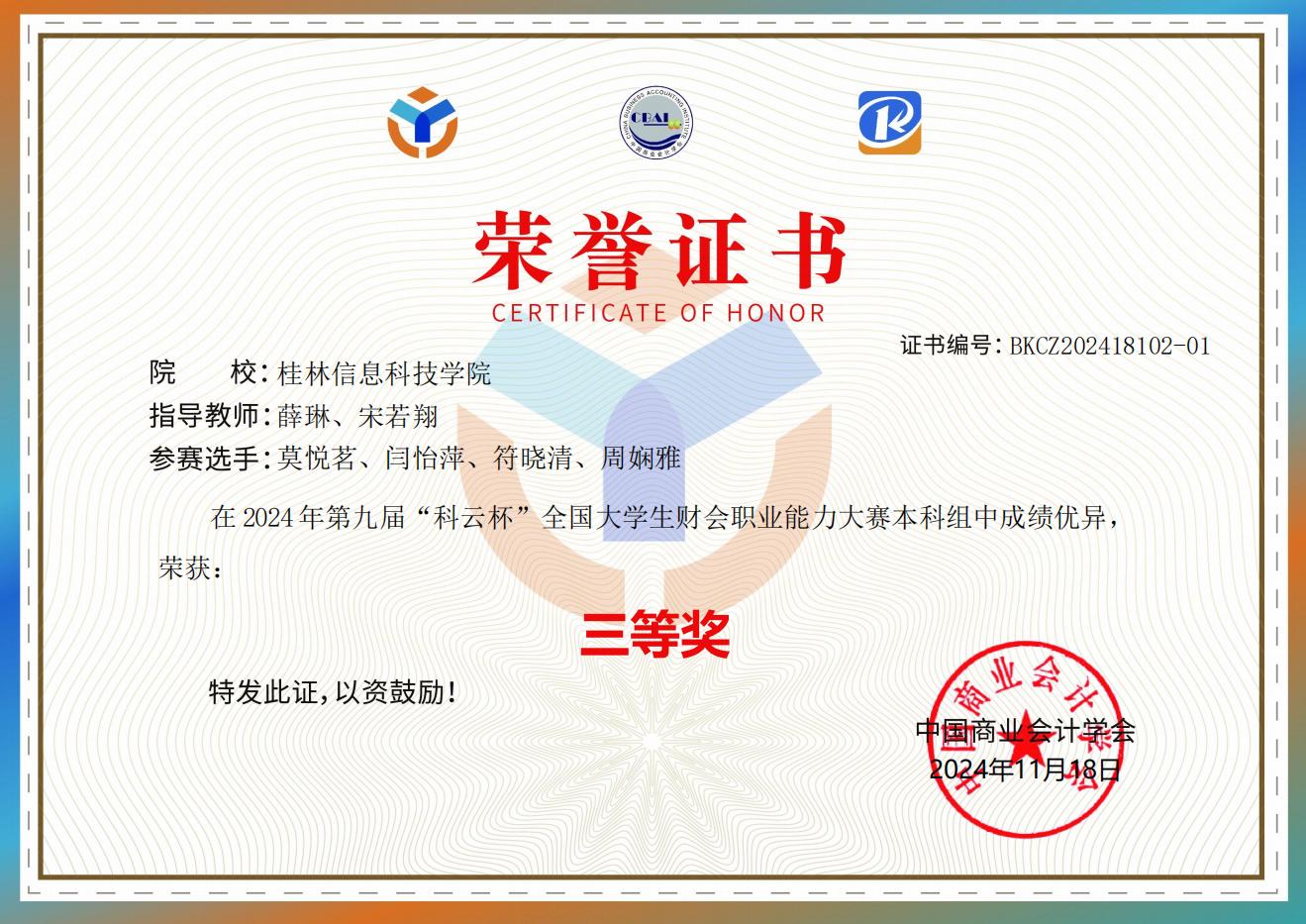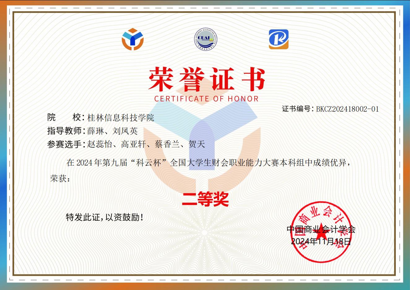 本次网络赛的队伍中本科组团队共504支,经过与全国各本科高校激烈的博弈后,商学院薛琳、刘凤英老师带领的财务管理专业赵蕊怡、蔡香兰、高亚轩、贺天 4 位同学荣获大赛本科组二等奖。同时,薛琳、宋若翔老师带领的财务管理专业莫悦茗、闫怡萍、符晓清、周娴雅 4 位同学也荣获大赛本科组三等奖。他们在比赛中展现出了顽强的拼搏精神和优秀的专业素养。我院学子在比赛中取得的优异成绩,不仅是对他们自身努力的肯定,也体现了beat365在财务管理专业教学方面的卓越成效。
