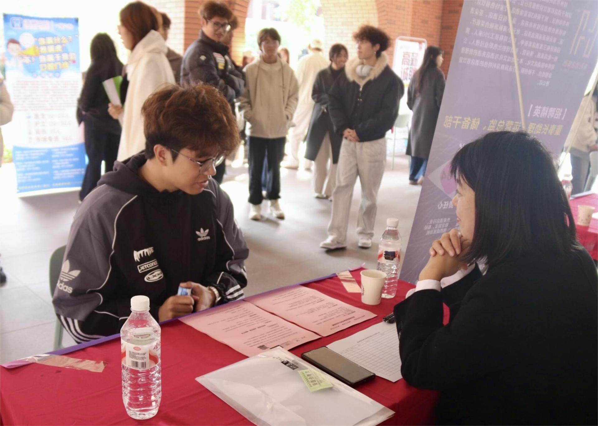 招聘现场采用“面试+宣讲”双轨模式。面试环节中,毕业生与企业代表就专业能力匹配度、实践经历及职业发展等议题进行洽谈。部分企业现场完成初步人才筛选,建立后续面试通道。宣讲会上,参会企业介绍了行业现状、发展战略及人才需求,重点解读了销售管理、物流运营等岗位的核心能力要求,为毕业生提供了清晰的职业发展导向。