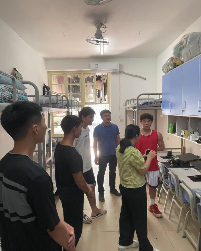 寝室内务整理活动过程中,在公寓中心的何丽巍老师的带领下,各新生寝室长一起参观了所在楼栋的优秀宿舍。在参观结束后,何老师随机抽取几间新生寝室,按照学校《学生公寓内务卫生管理实施办法》进行现场打分和点评,并给予改进建议。【体育与健康学院 容贤钦】
