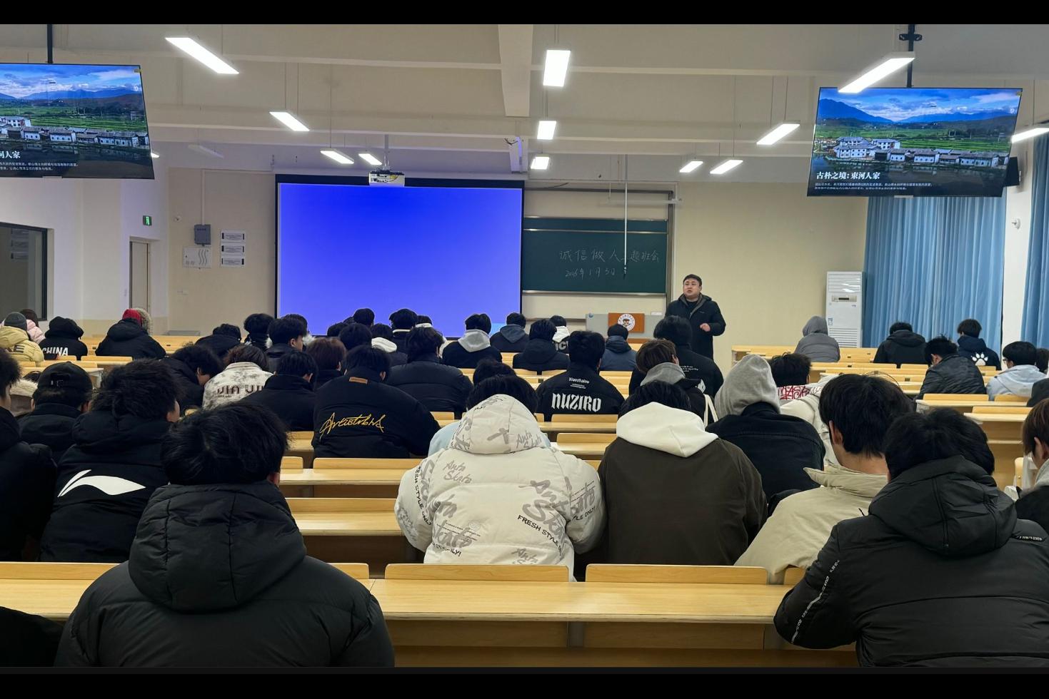 为强化新生诚信意识,涵养优良学风,引导学生将诚实守信内化为行为准则,1月3日,beat365官方网站体育与健康学院在E308教室召开“诚信做人、诚信考试”主题教育。学院党总支副书记谢长远主讲,2025级休闲体育、运动康复两个专业全体新生参会。